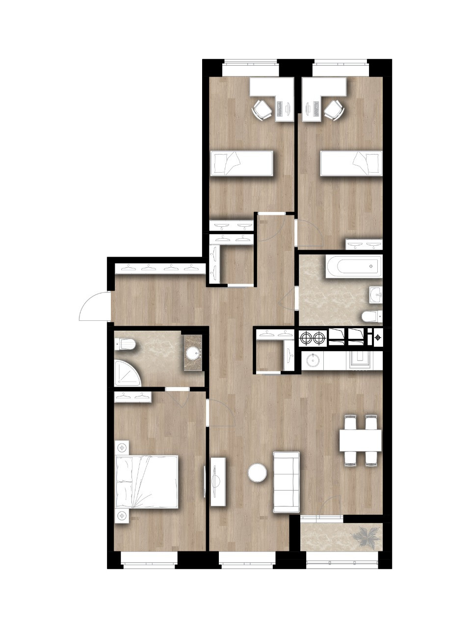Три просторные светлые комнаты на разные стороны, высота потолков 2,80. Витражные видовые стекла в пол, индивидуальное отопление. Большая гостиная 30 метров, 2 санузла. Квартира оштукатурена.