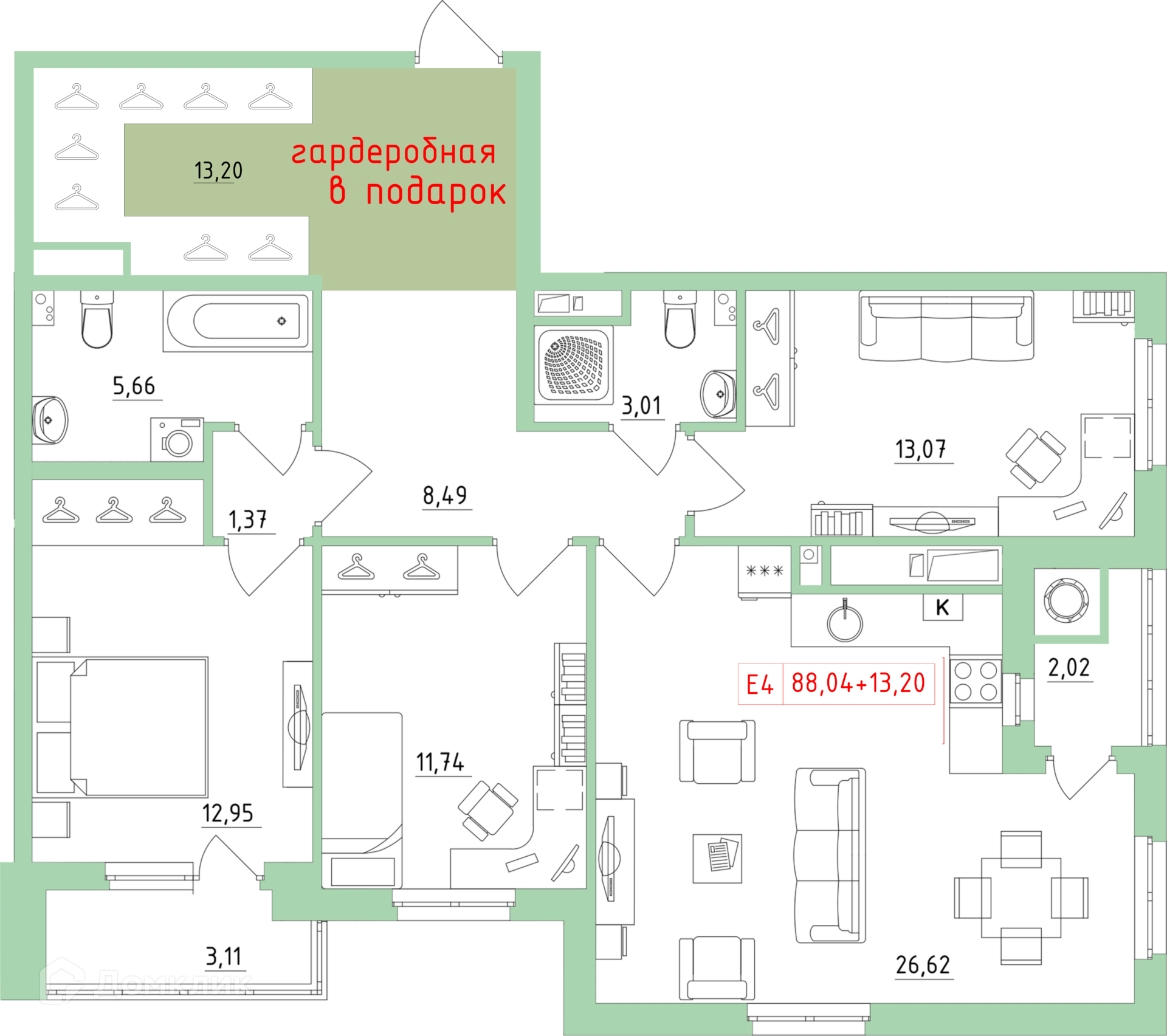 Общая площадь 88.04 м2