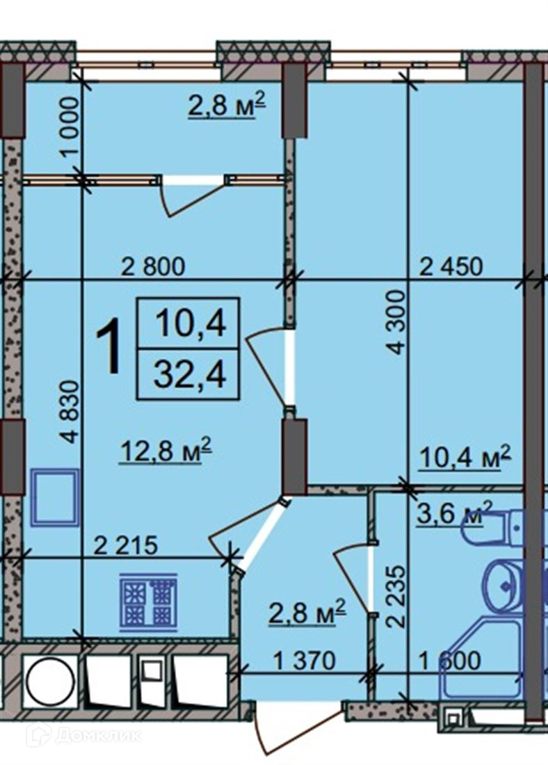 Общая площадь 32.4 м2