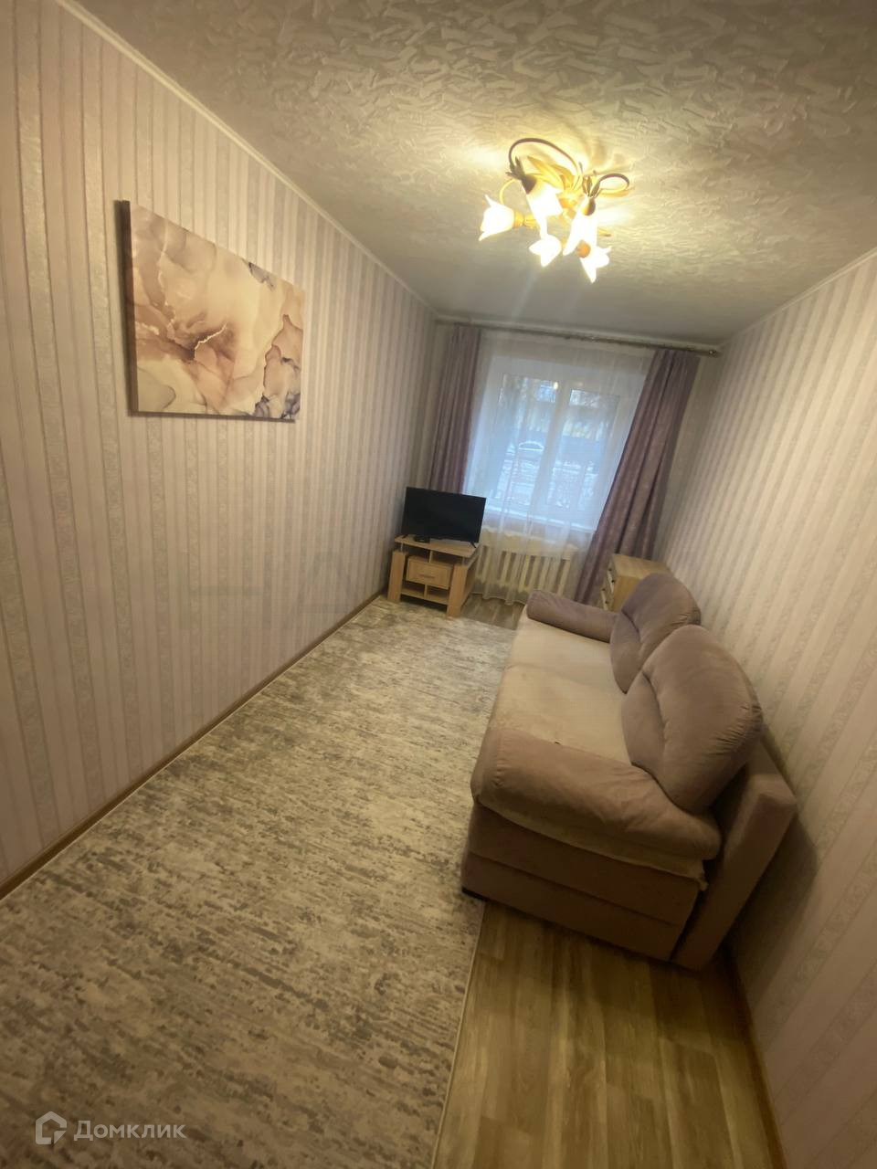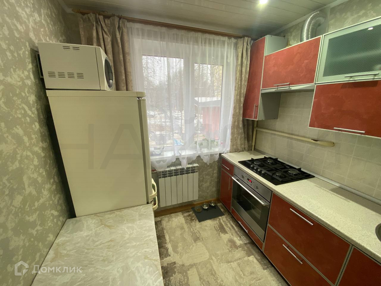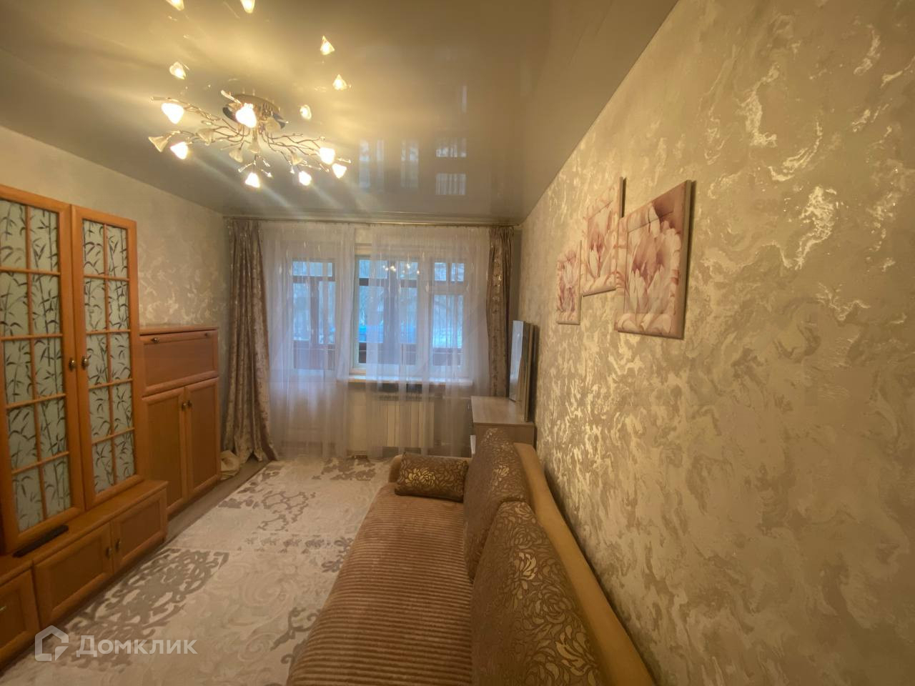 В квартире сделан свежий ремонт, заменена проводка и коммуникации, установлены счётчики, поклеены обои, в комнатах натяжные потолки и пластиковые окна.