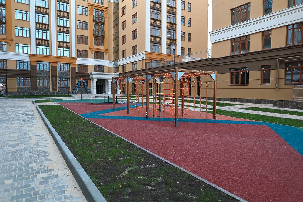 Двор оборудован спортивными тренажерами, детской площадкой, теннисным столом, 2 зоны патио. Дом находится на пл. Мичурина - самое "сердце" г. Рязани.