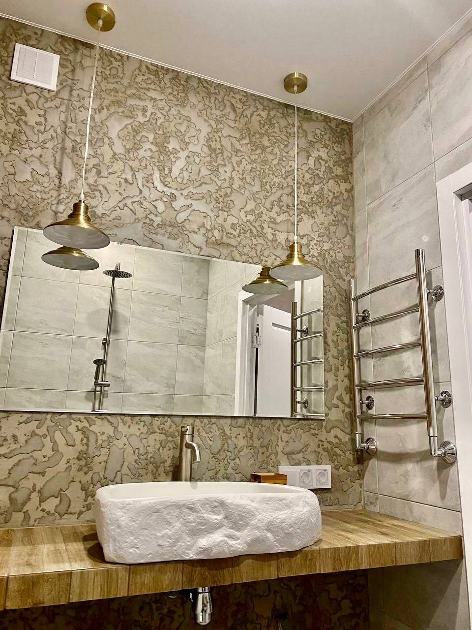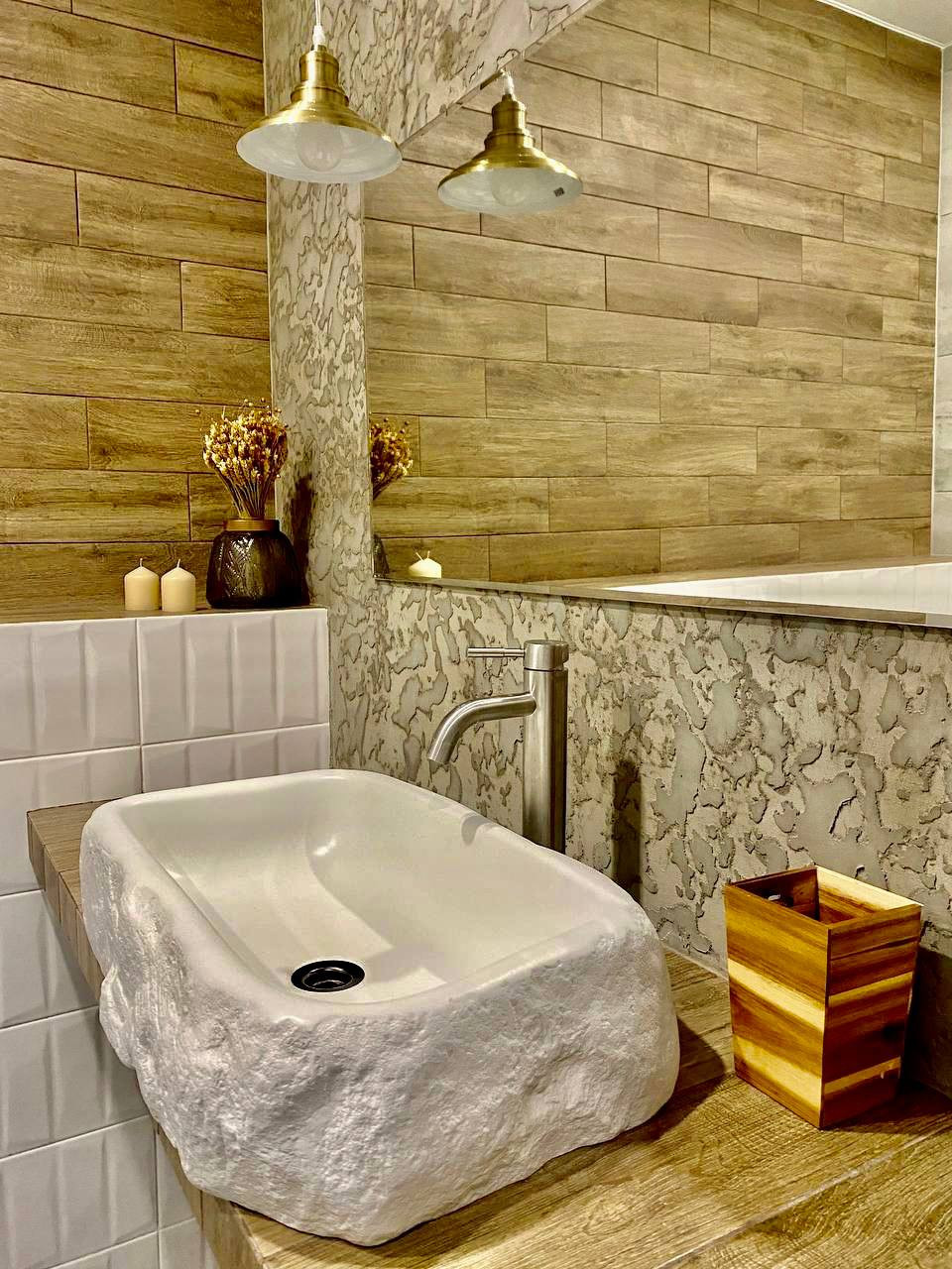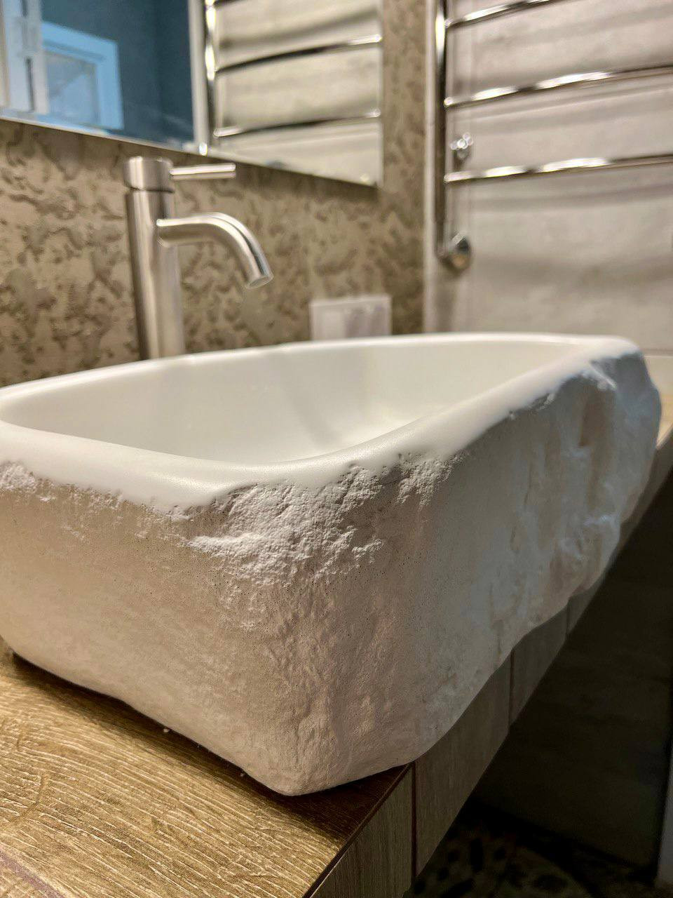 7. Уникальная РАКОВИНА в ванне. Произведена на производстве наших партнеров под наш дизайн на заказ. Ехала в вашу квартиру из другого региона страны. Материал: керамогранит армированный стекловолокном. Прочность в разы выше керамических. Вес - 30кг. Дизайн на фото.