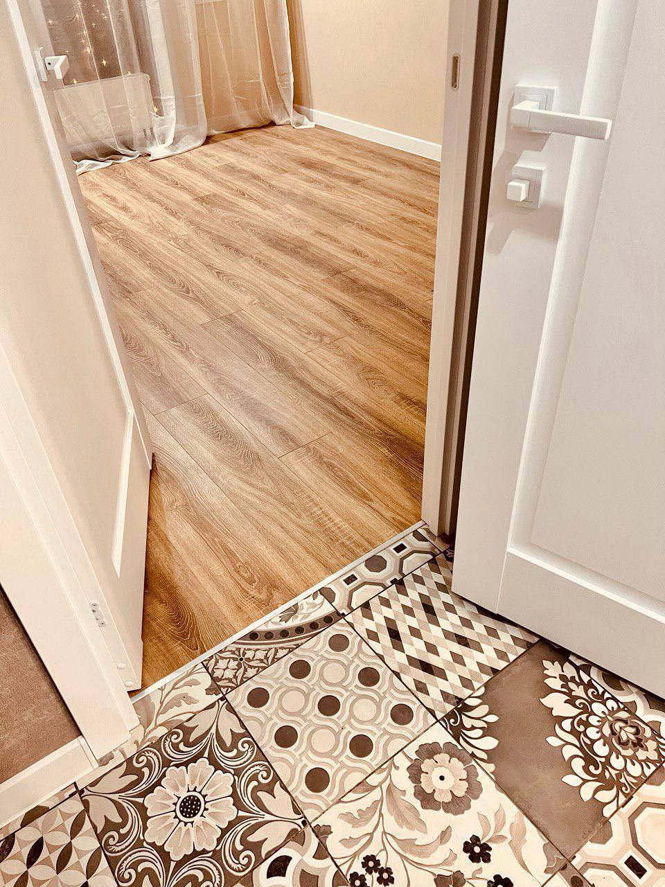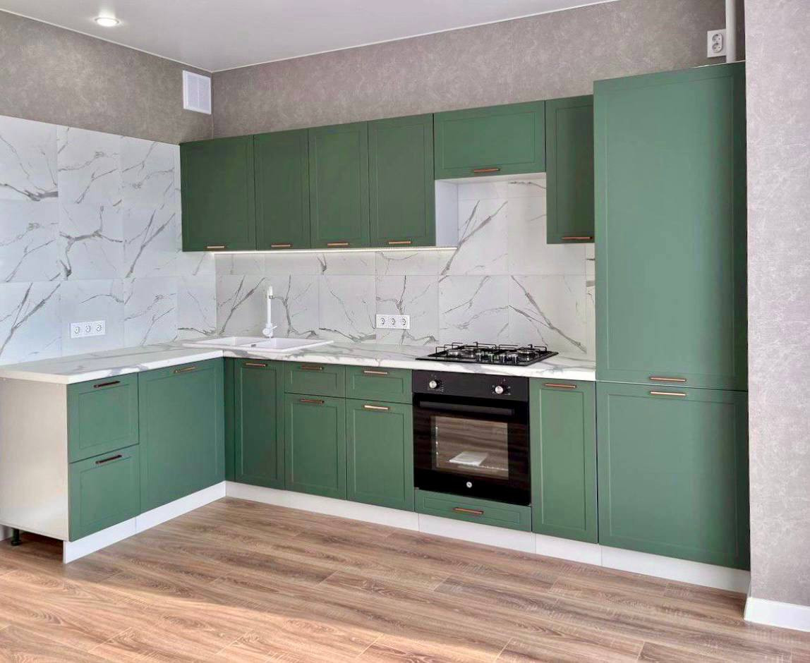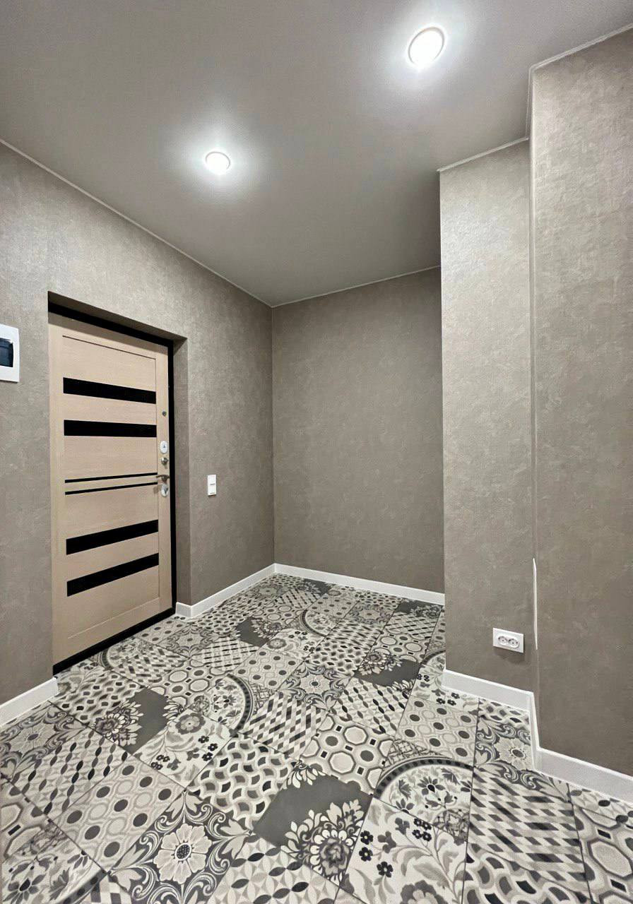 14. ФИШКИ ДИЗАЙНА И ОТДЕЛКИ. Керамо/гранит на полу обединяет пространство коридор/ванная, туалет. Нет порогов, стыков. Все гладко. Зелёный акцентный цвет подбирали один в один по всей квартире. Например дверца шкафа в туалете изготовлена там же где и кухня. Даже решетка вентиляции покрашена в цвет стен вручную. Этот прием объединяет пространство. Такой цвет по ВАСТУ и фен -шуй помогает процветанию, устойчивости, росту и сохранению.