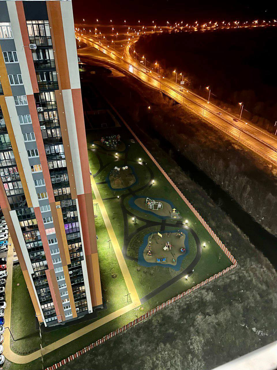 16. ДВОР. Парковочных мест много. Есть крытые. Как профессиональный архитектор могу сказать четко- всё сделано по нормативам. Несколько спортивных и детских площадок. Высажены газоны, кустарники, сосны. Приятное место. В крытой парковке замечен лимонный спортивный БМВ.