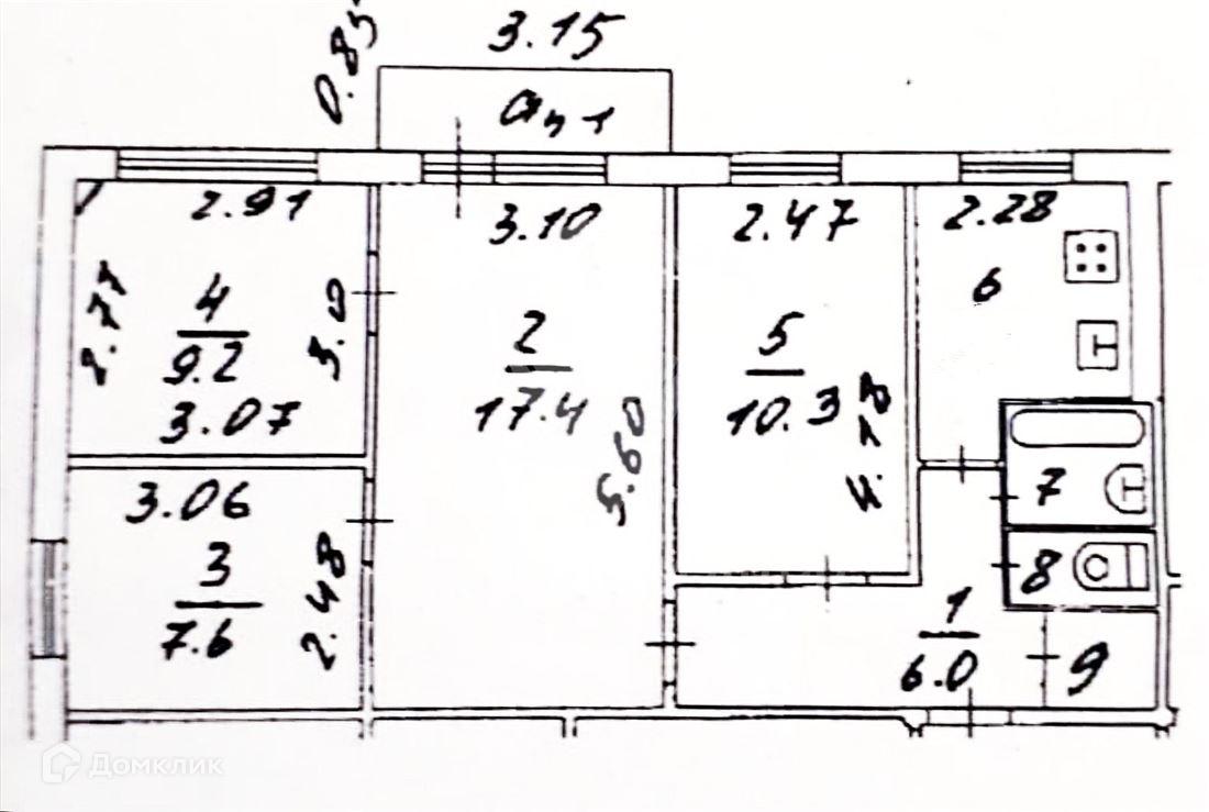 Балкон, лоджия 1 балкон