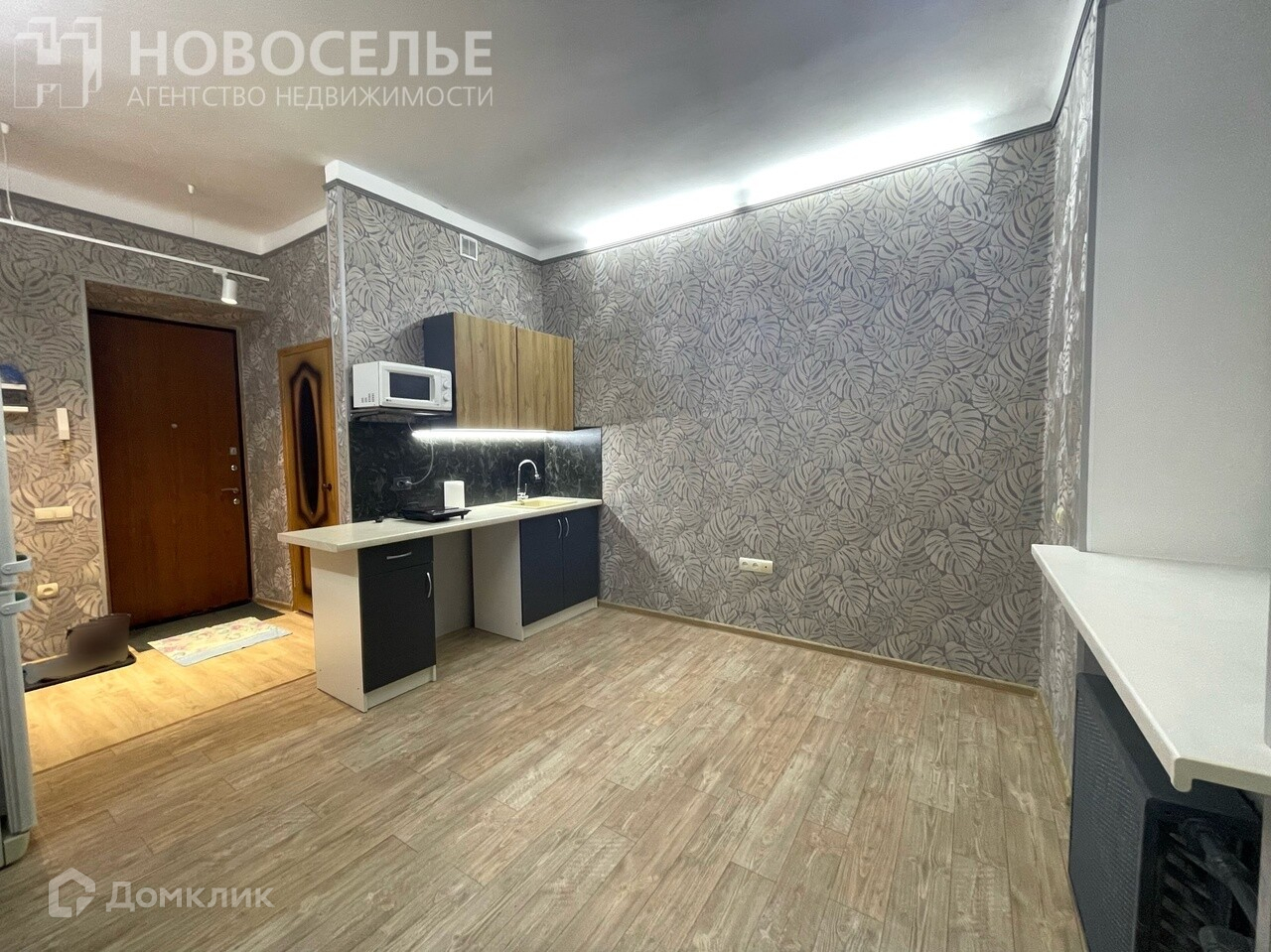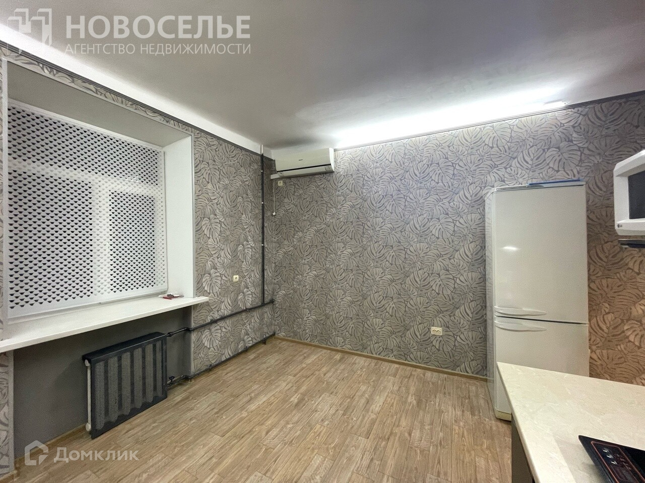 В квартире остаётся все, что есть на фото: кухонный гарнитур, холодильник, кондиционер,.