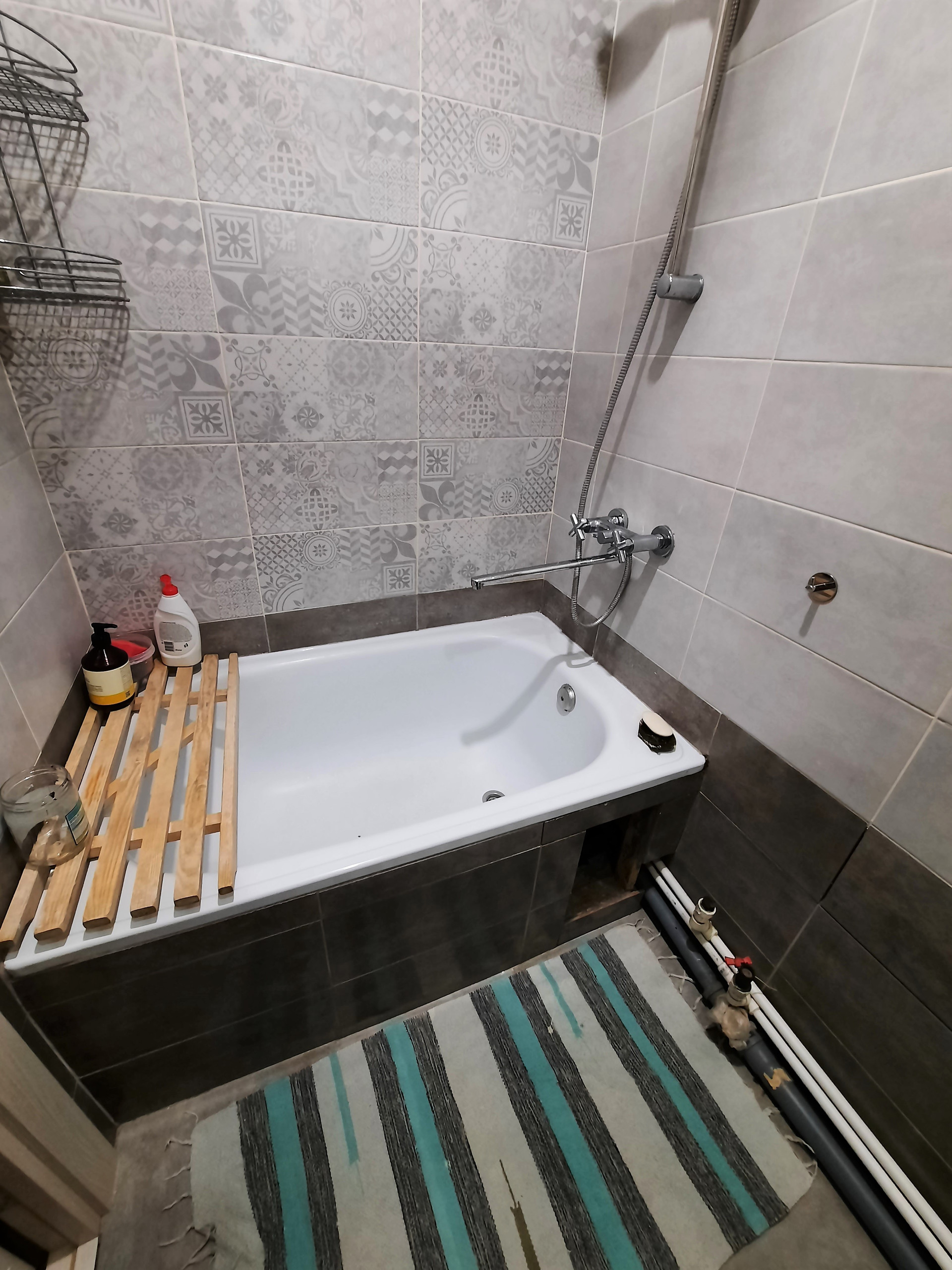 С/у в плитке. Новая сантехника, бойлер на горячую воду. Вам останется только доделать потолок и установить раковину. Подводка имеется.