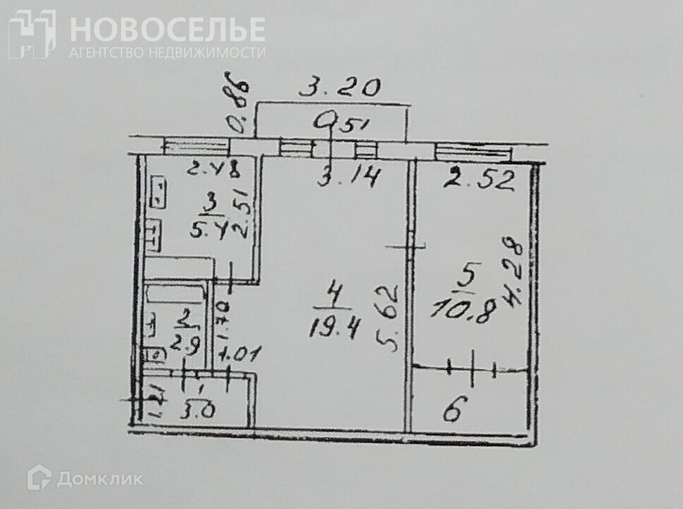 Площадь кухни 5.4 м2