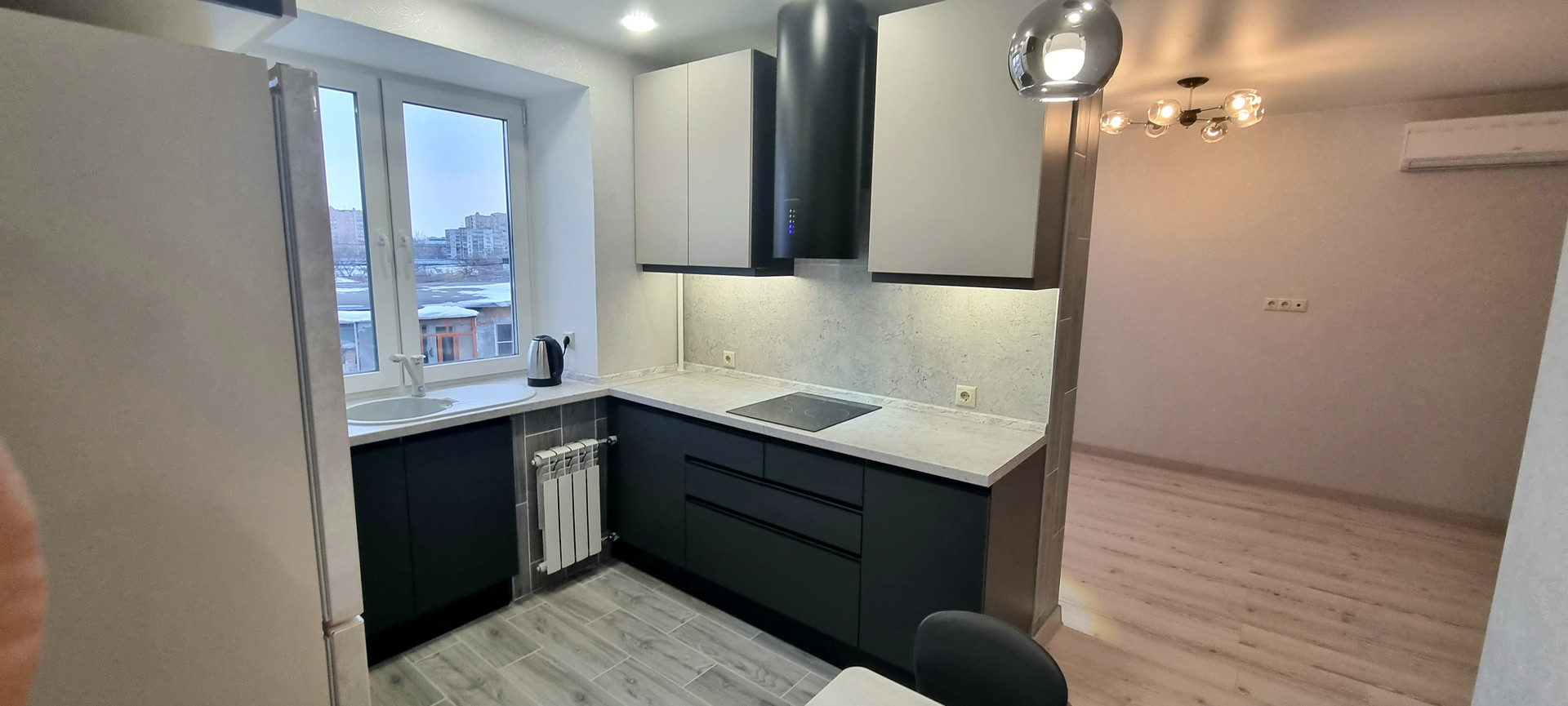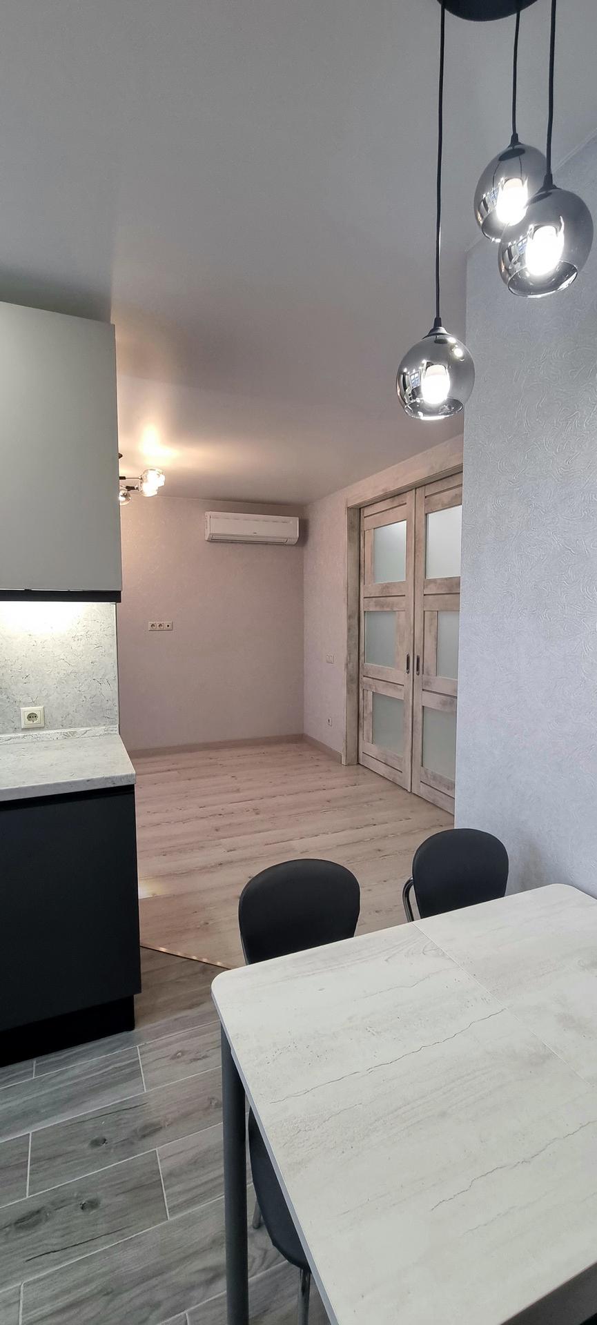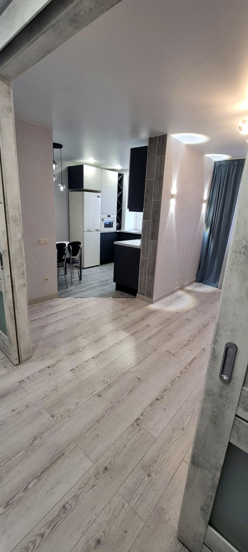 В отличном состоянии, сделан капитальный ремонт, перепланировка узаконена, полностью заменена вся электропроводка, трубы водоснабжения, канализация, трубы отопления, радиаторы все новое. Стены выровнены, окна ПВХ, с/у в плитке, пол выровнен, ламинат водостойкий по всей квартире, качественные межкомнатные двери, входная дверь из металла, качественные обои. Балкон отделан и застеклён. Оборудована вместительная гардеробная.