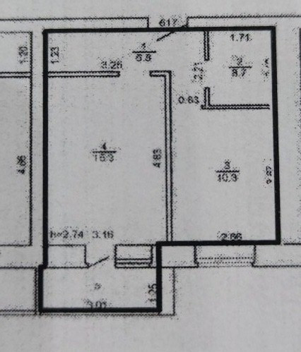 Жилая площадь 15.3 м2