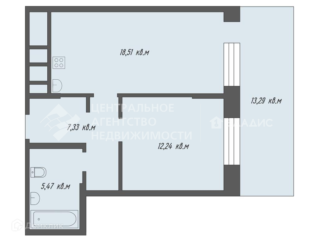 - Вместительный санузел 5,47 кв.м