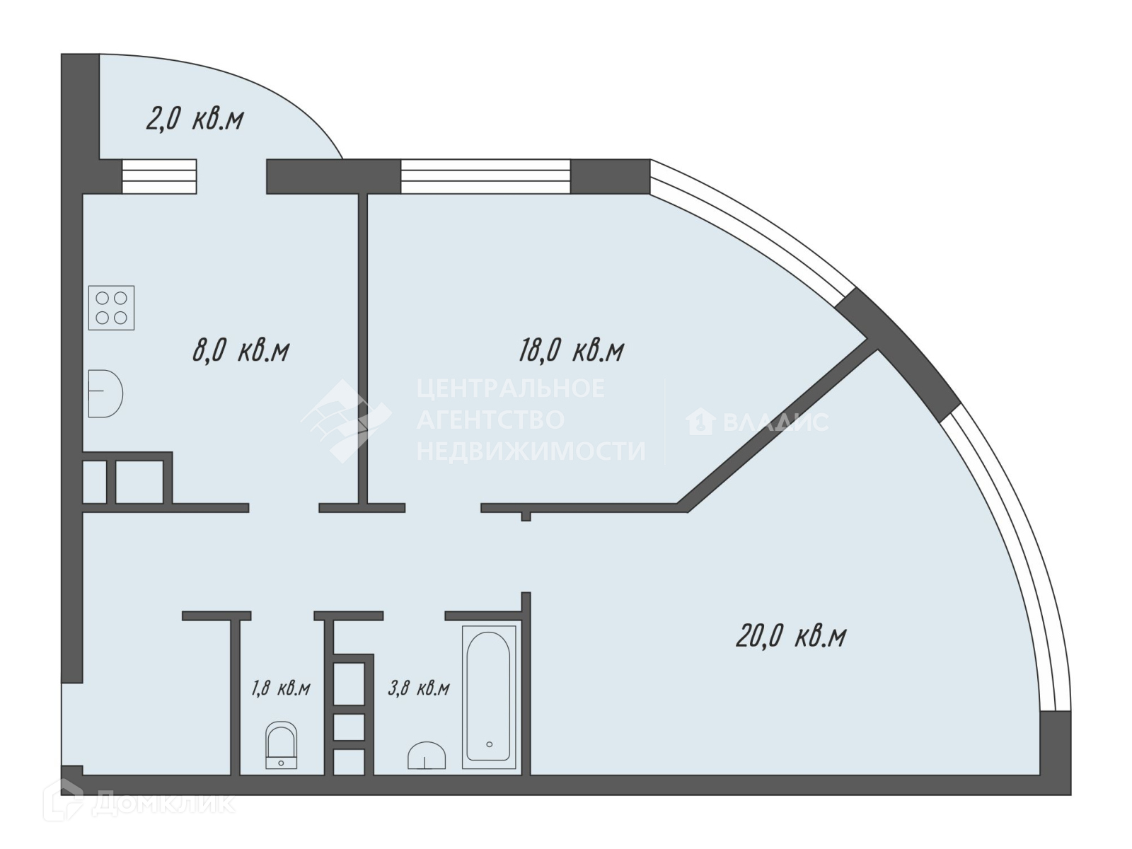-две спальни площадью 18 и 20 кВ.м ;