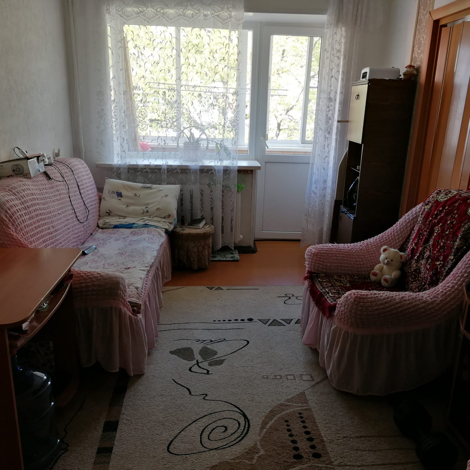 Квартира светлая, теплая и уютная. Комнаты смежные, в каждой комнате есть окна ПВХ, балкон так же застеклен ПВХ, санузел совместный в плитке!