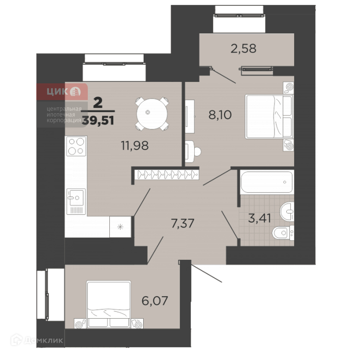 Общая площадь 39.51 м2