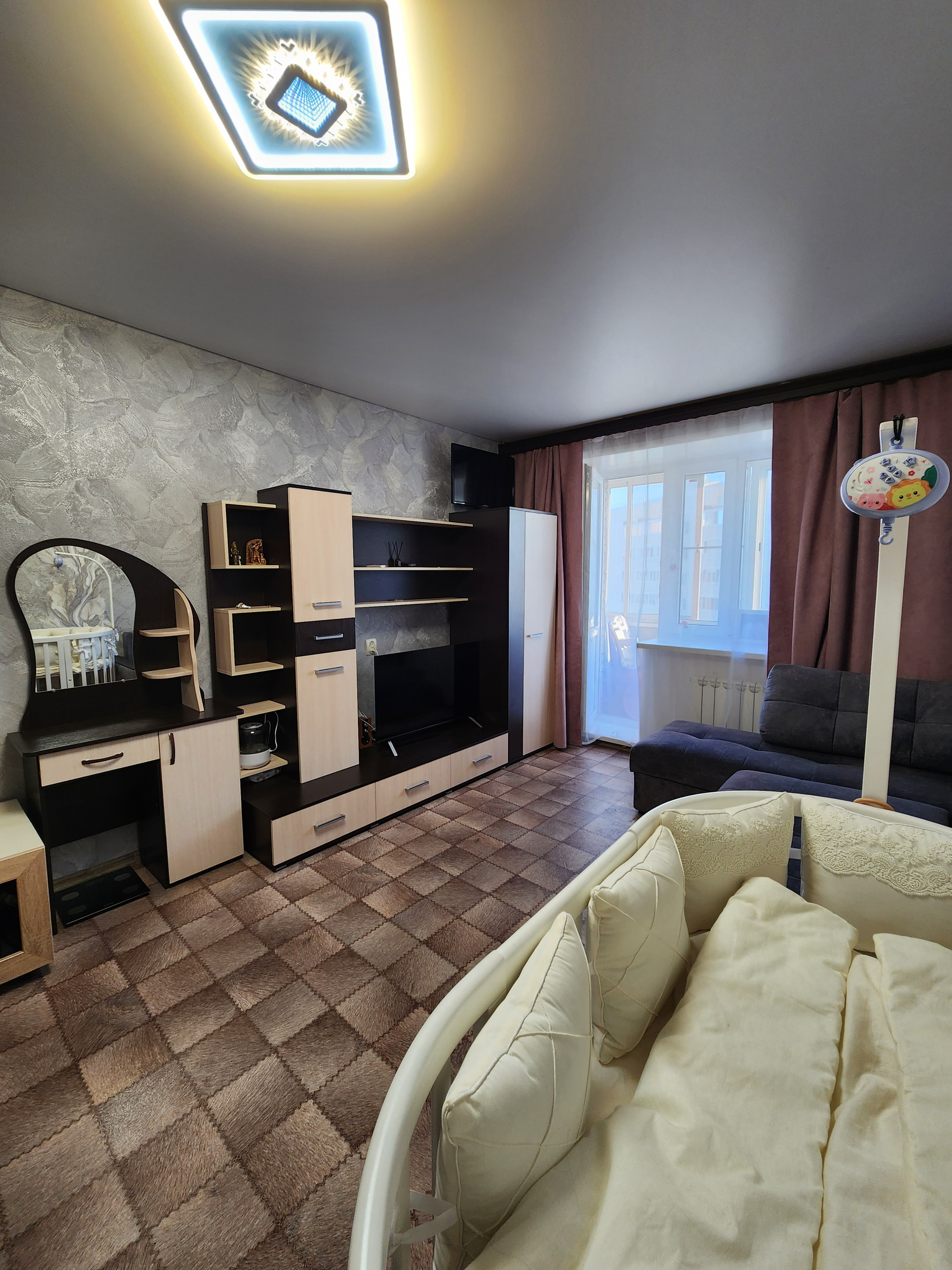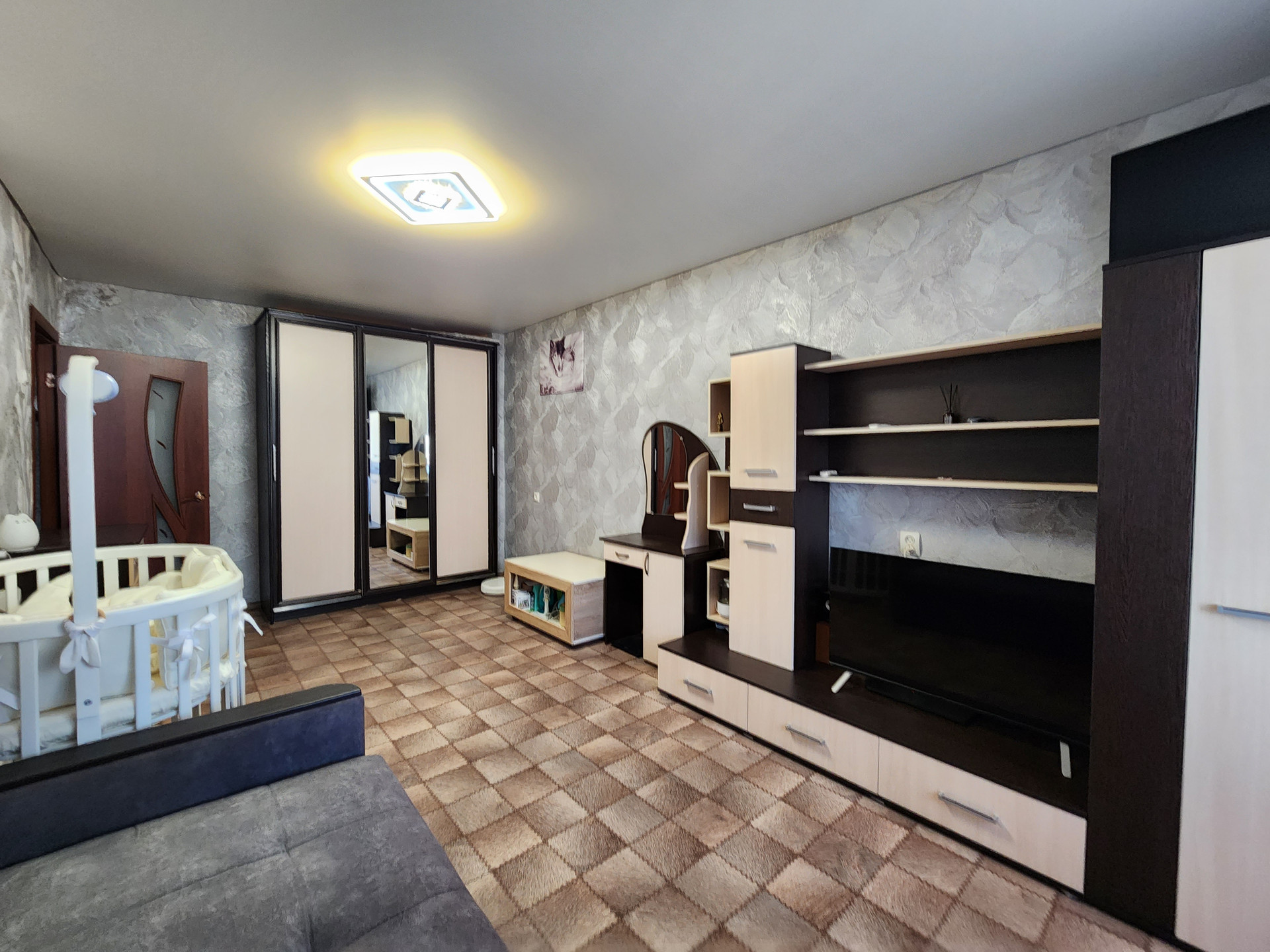 Квартира полностью укомплектована всей необходимой мебелью и техникой которая частично остается новым владельцам. Квартира не угловая, имеется оборудованная гардеробная, санузел совмещен, натяжные потолки, кондиционер.Во дворе дома современная детская площадка, парковка для автомобилей. Тихий и спокойный район.Без обременений и долгов, один взрослый собственник, более 5 лет в собственности, вся сумма в договоре!!! Реальному покупателю торг!!!