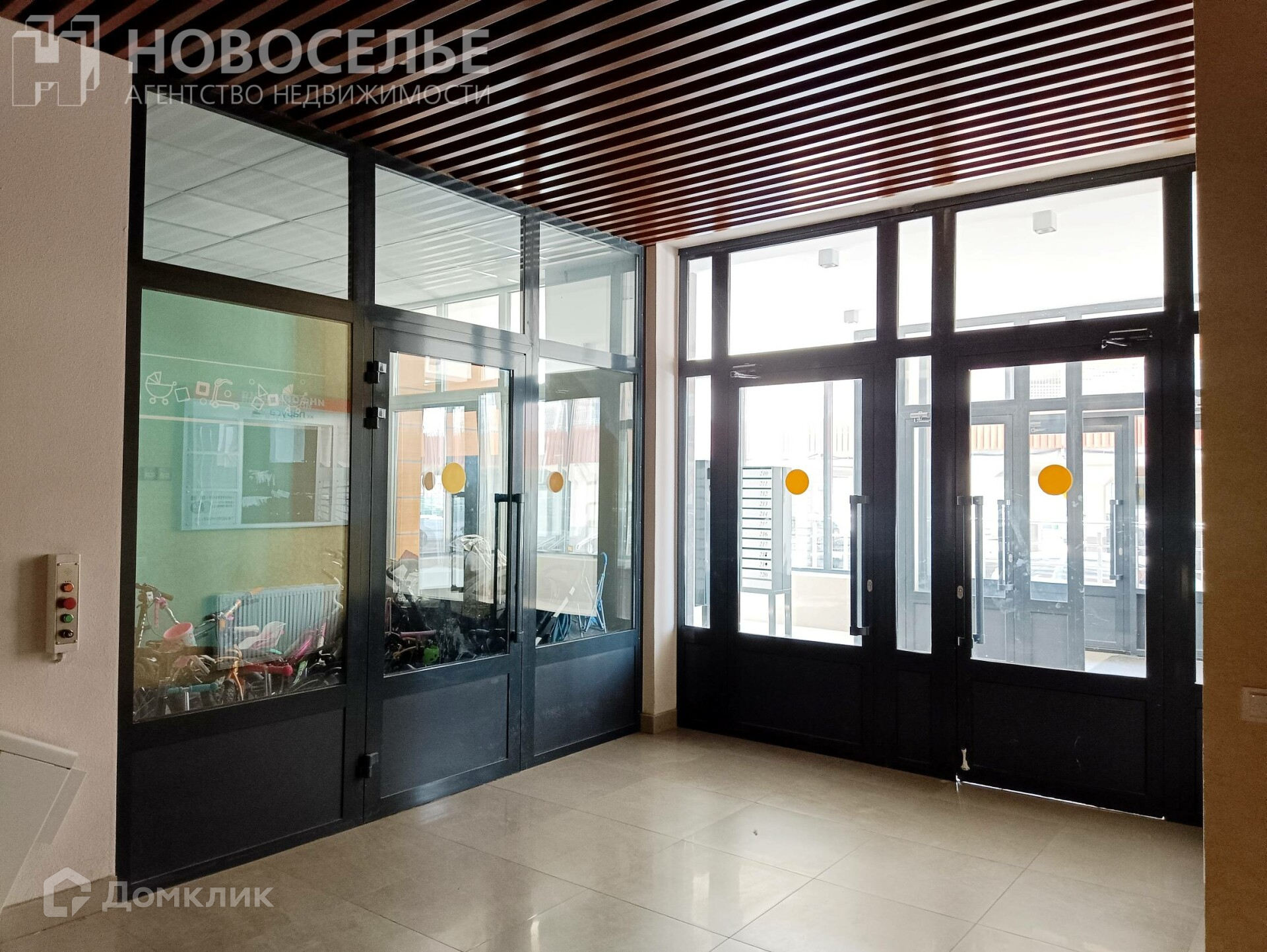 Входная группа с местом для колясок и велосипедов. Три бесшумных скоростных лифта.