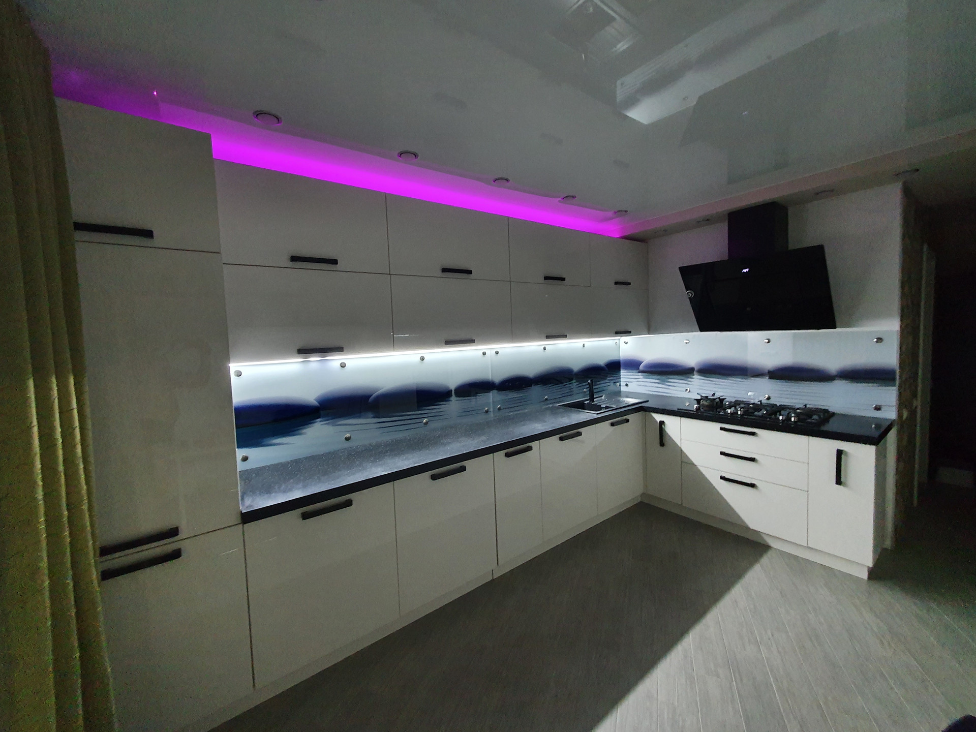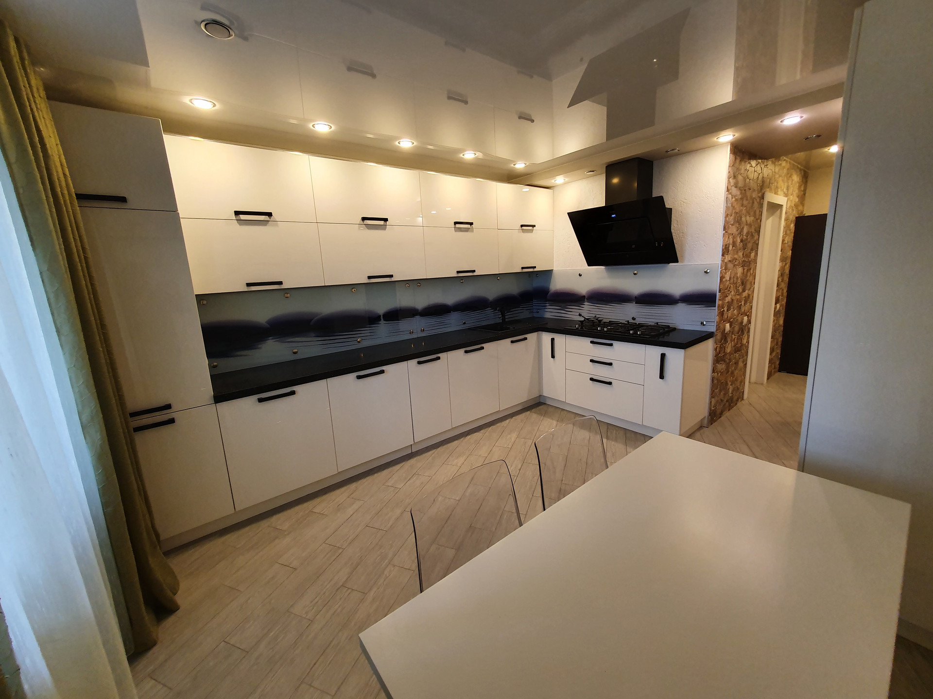 На кухне встроенная техника: морозильник и холодильник Liebherr, СВЧ и духовка Zigmund&Shtain, посудомойка Bosch, стиральная машина LG.