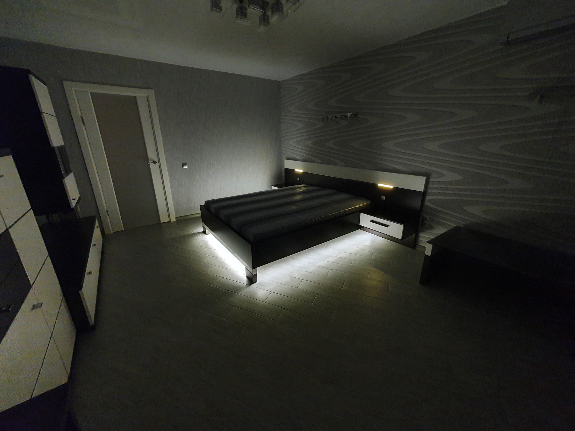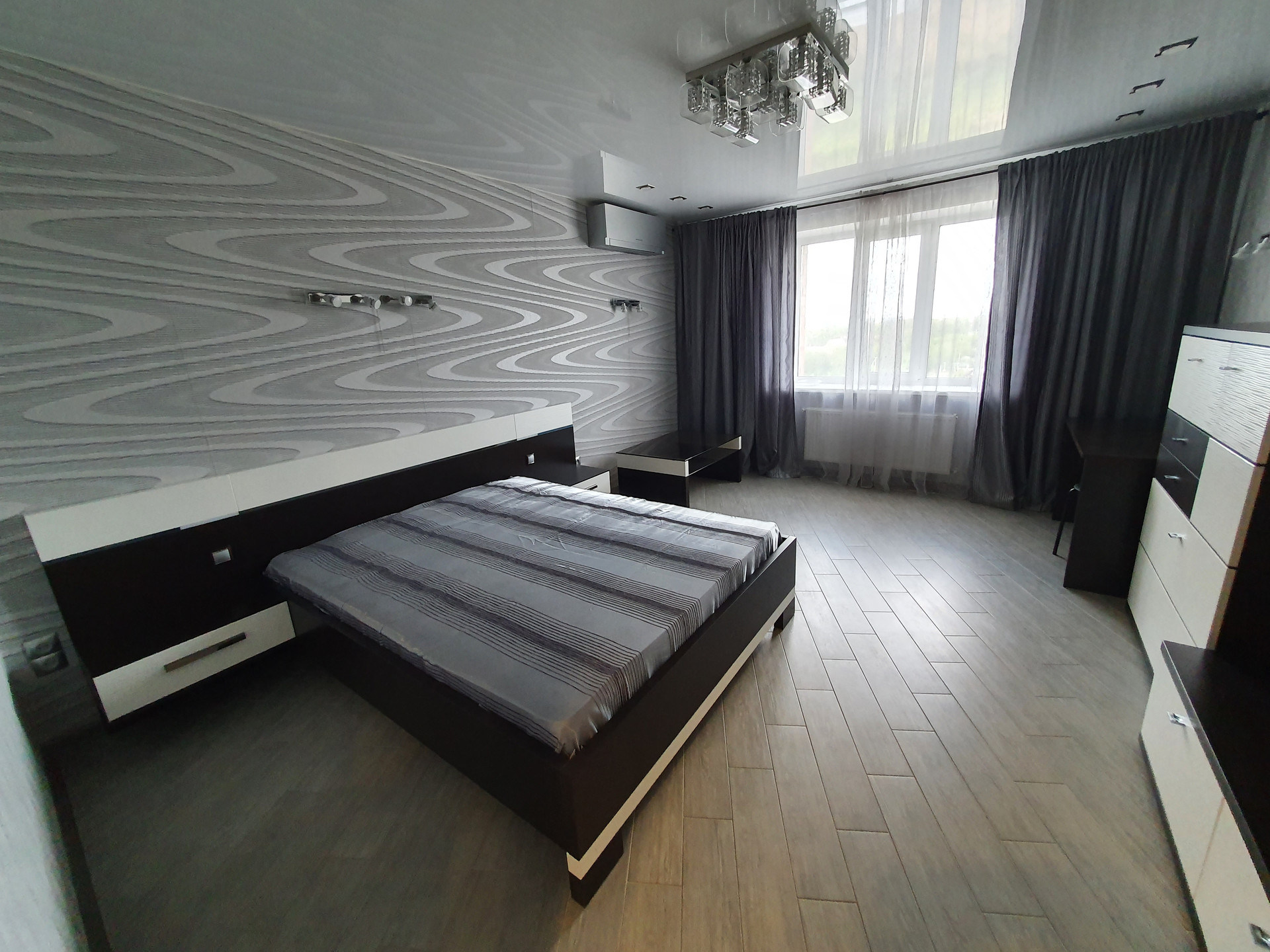 В спальне мощный и тихий дизайнерский кондиционер Mitsubishi.