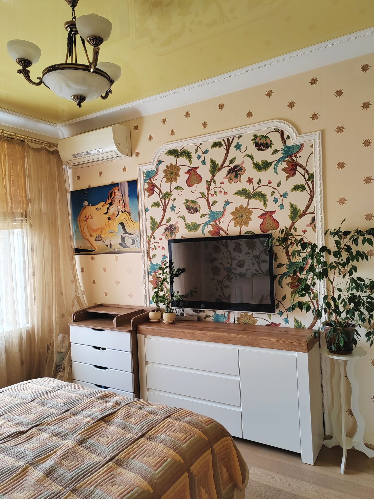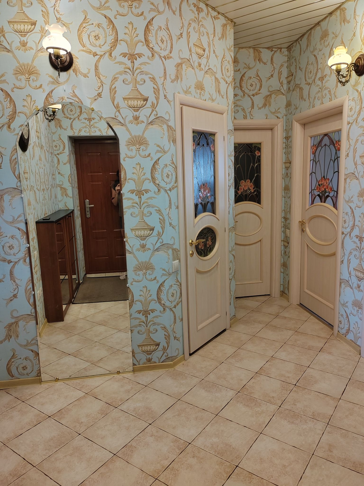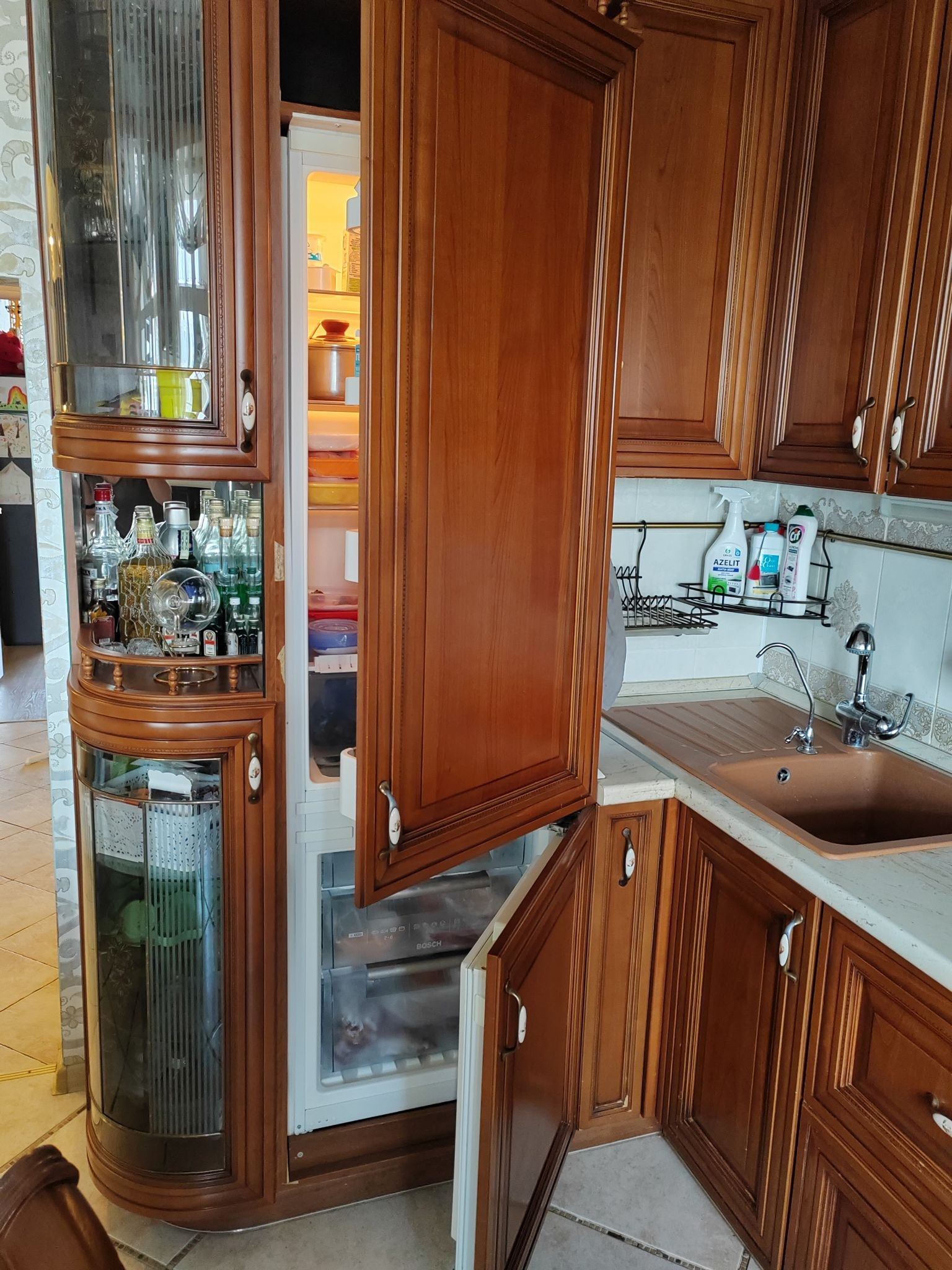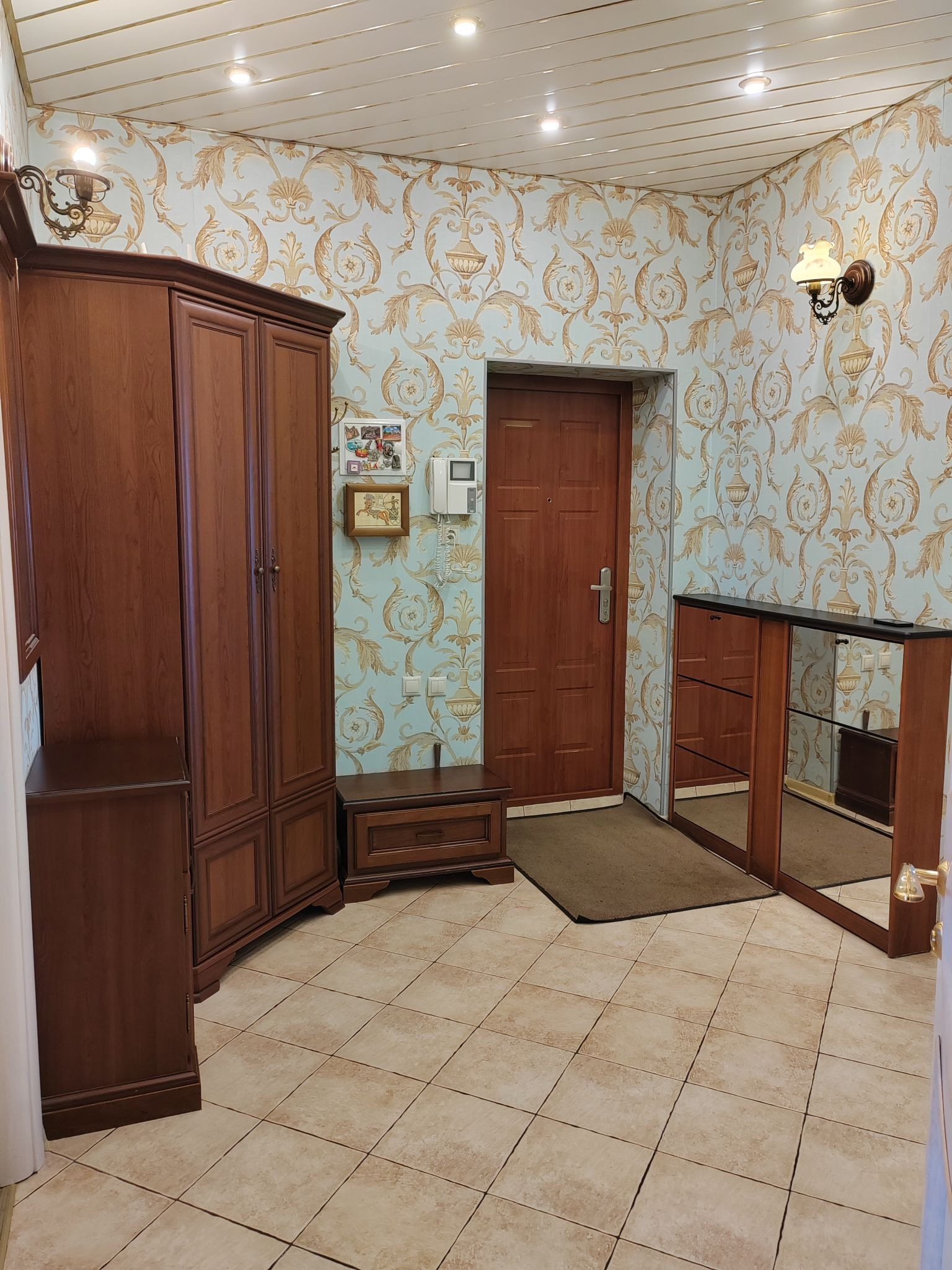 Квартира с полным ремонтом: в комнатах на полу паркетная доска, на кухне, в коридоре и санузлах - плитка на полу, двухуровневые натяжные потолки, высота потолков 3м. Кухня из массива дерева: встроенная посудомоечная машина, встроенный холодильник, варочная панель и духовой шкаф, вытяжка - всё остаётся.