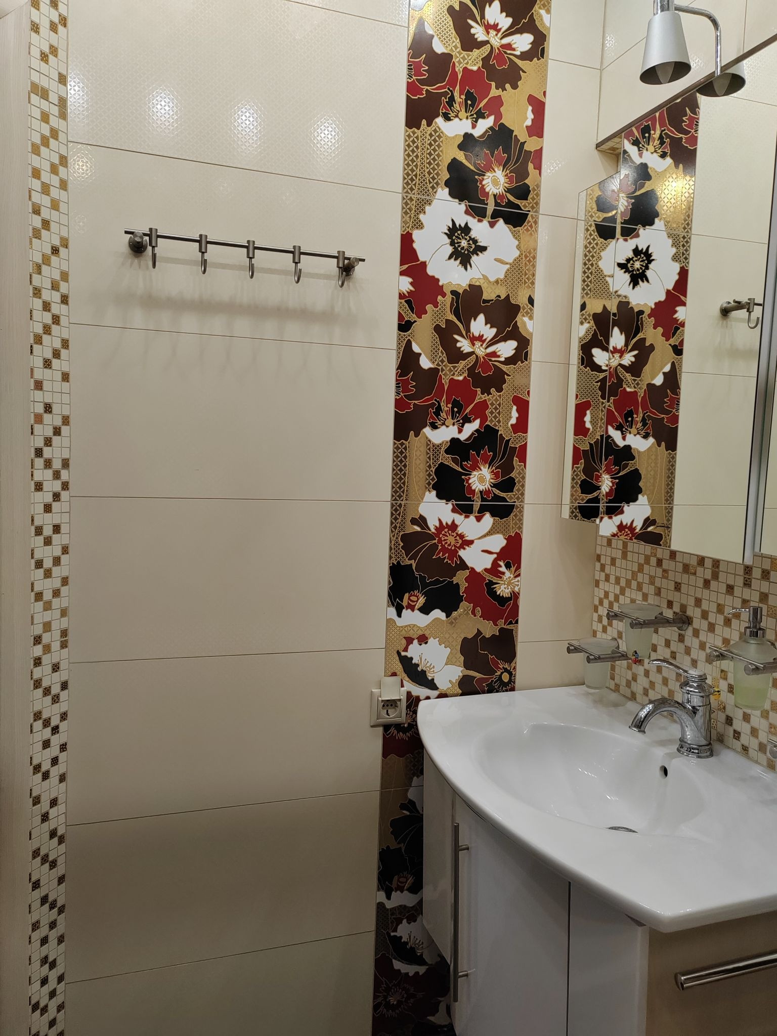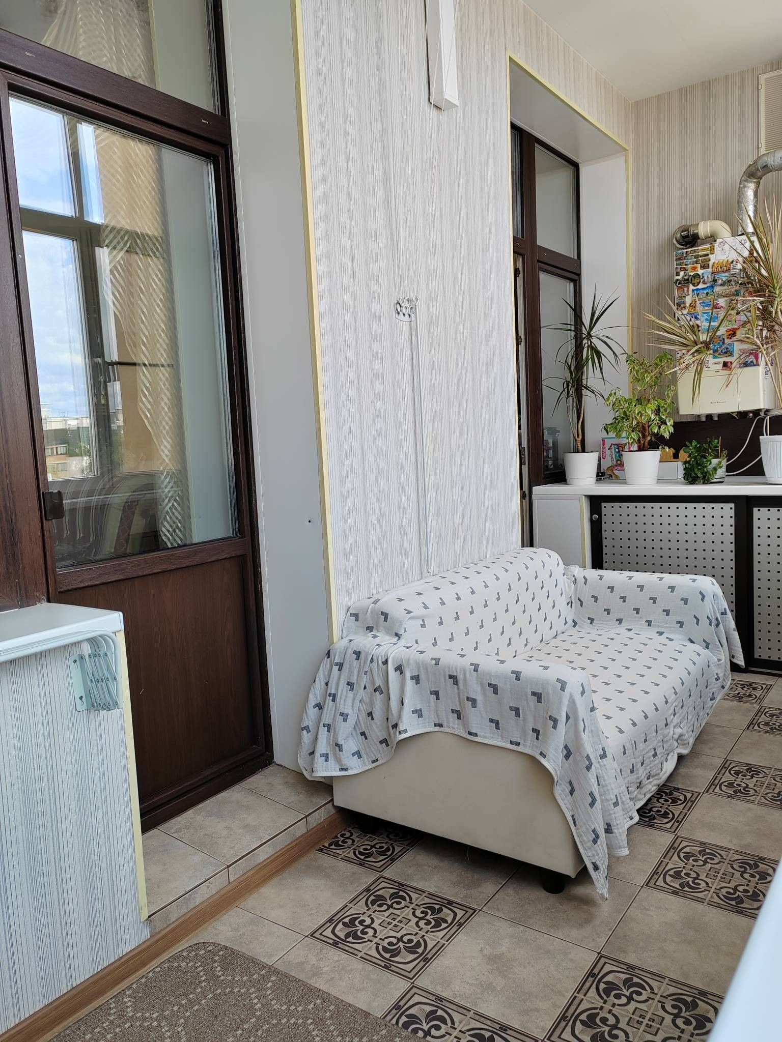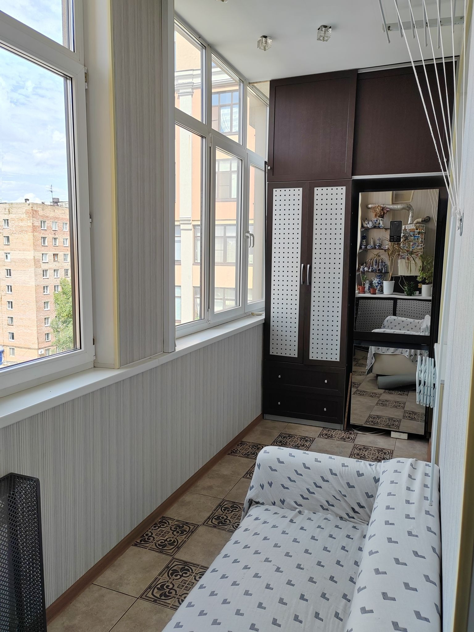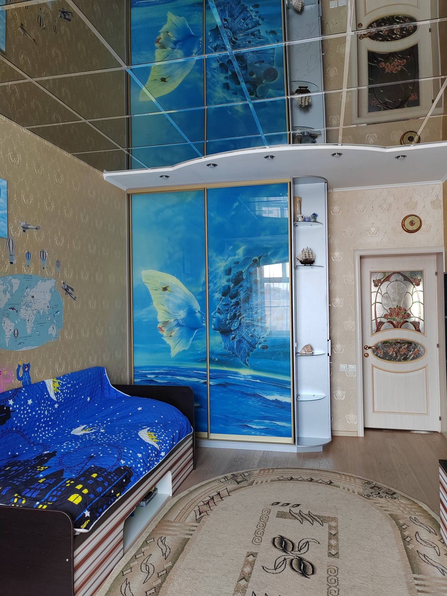 Кухня-гостиная 24,2 кв.м. с выходом на лоджию. Лоджия на 2 окна, утепленная 8,1 кв.м. Две большие комнаты. Детская 19,7 кв.м и спальня 18,3 кв.м. В спальне устроена вместительная гардеробная (3,2кв.м). В детской вместительный шкаф купе, на стенах декоративные наклейки с лёгкостью снимаются.
