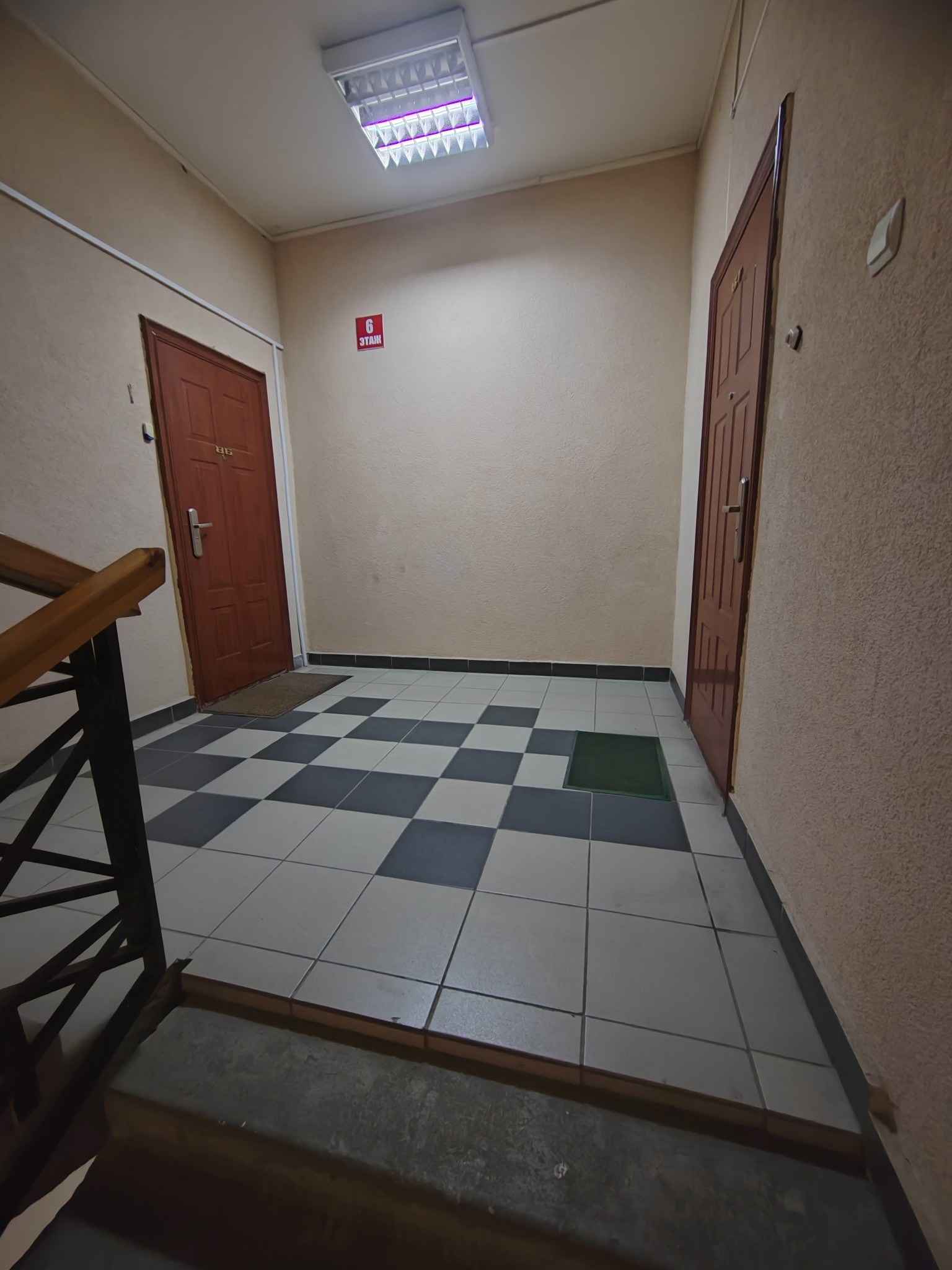 6 этаж 10 этажного дома. На этаже две квартиры.