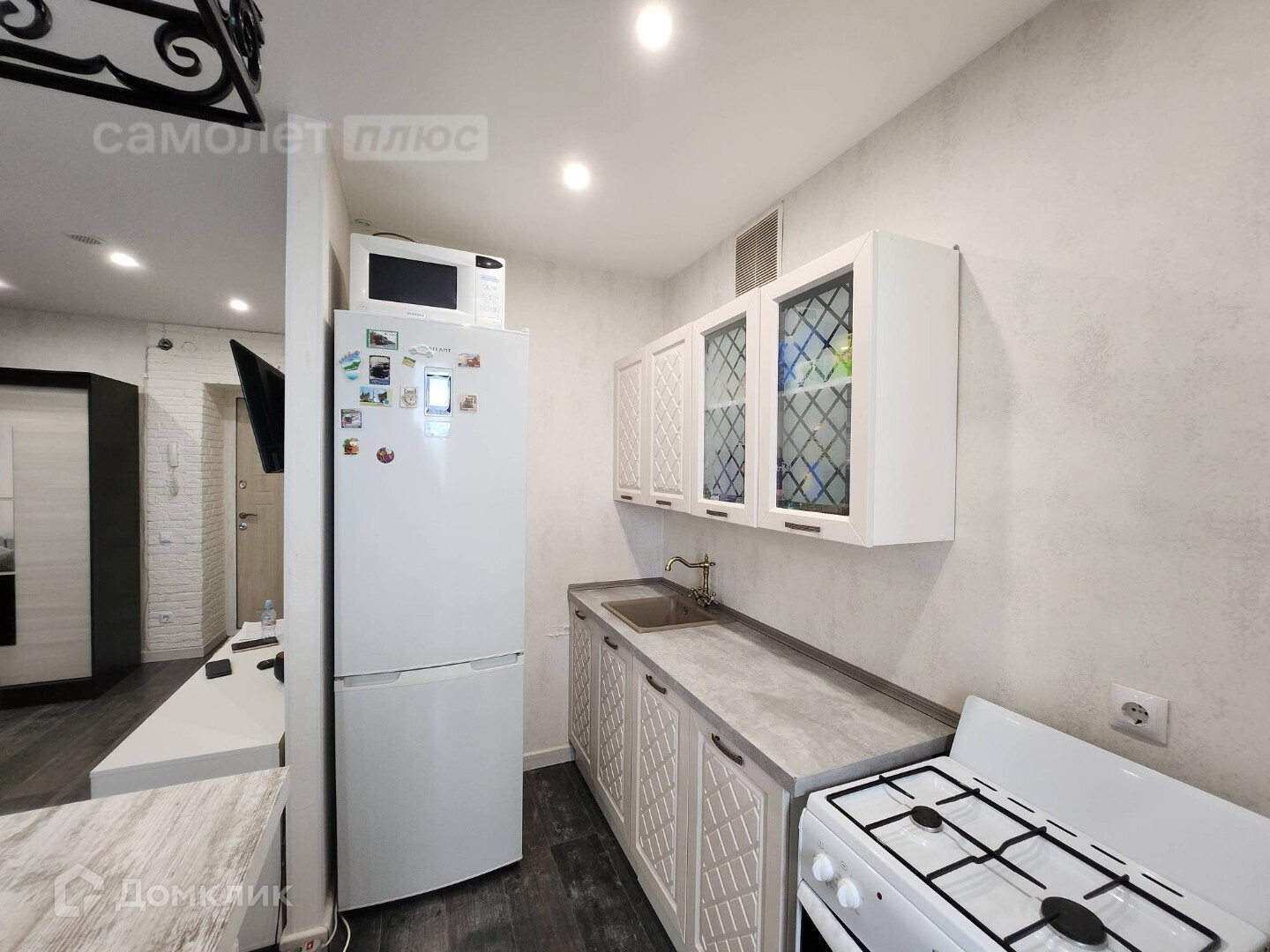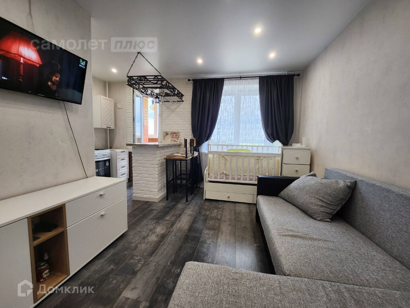 - в подарок остается вся необходимая мебель: кухонный гарнитур, газовая плита, диван, шкаф-купе, тумбочка, проведен интернет, кабельное ТВ.