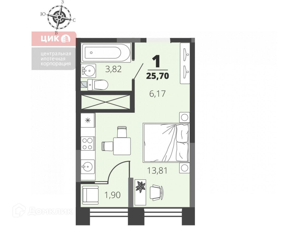 Общая площадь 25.7 м2