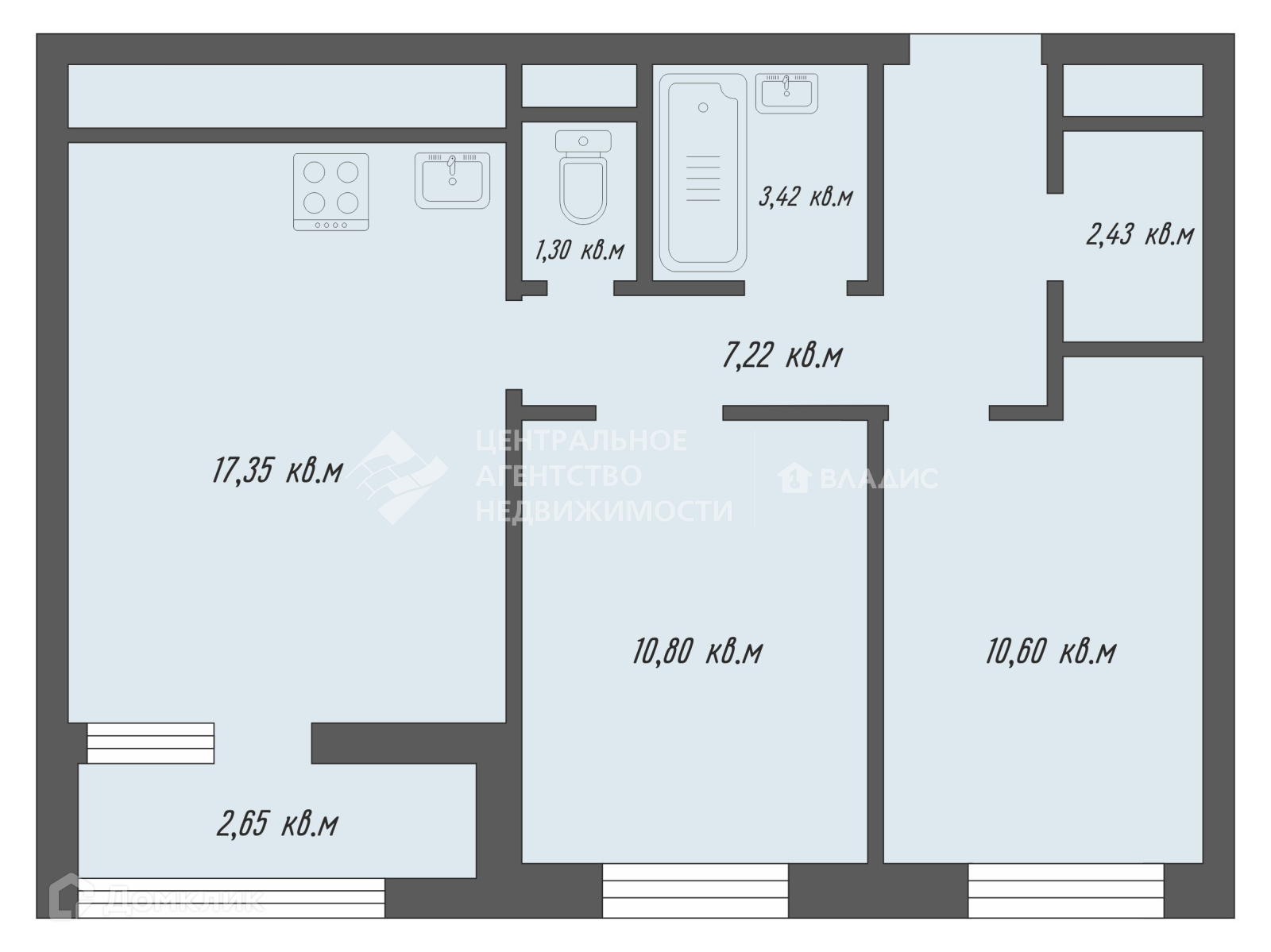 Общая площадь 56 м2