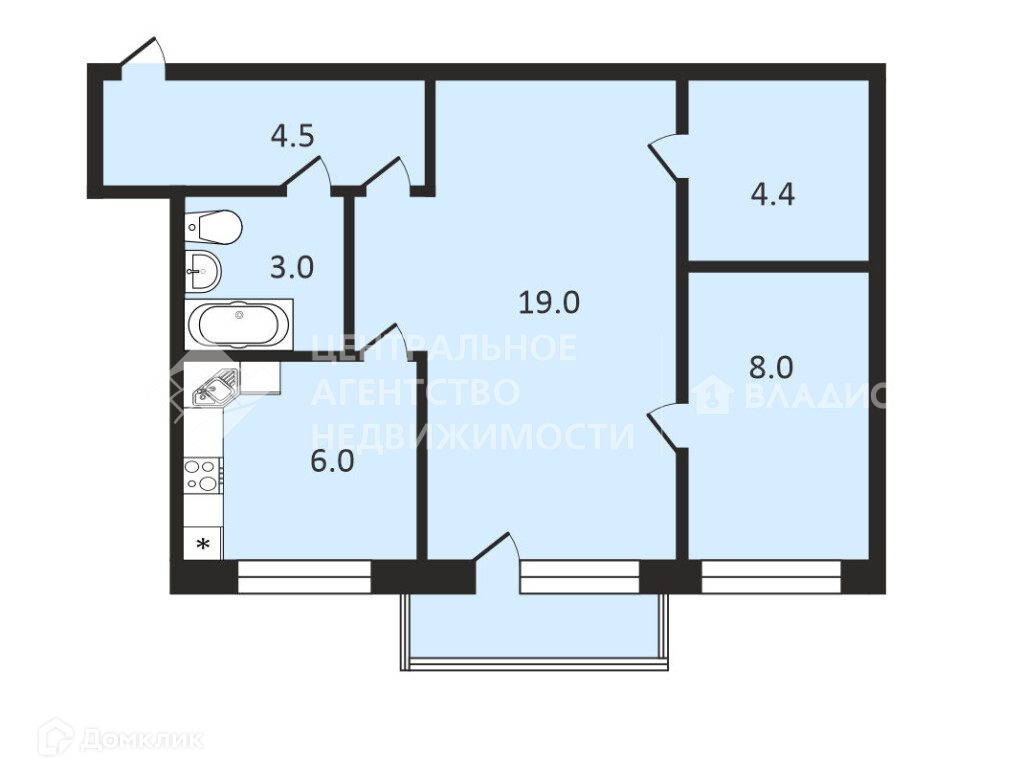 Общая площадь 44.9 м2