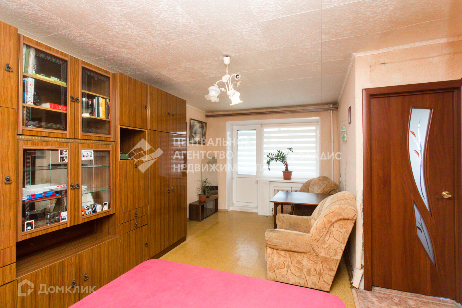 На 5 этаже 5-и этажного кирпичного дома, 44,9 кв.м общей площади, 31,4 кв.м. жилой, 6,0 кв.м. кухни и балкон 2,55кв.м. застеклен ПВХ-профилем и отделан вагонкой.