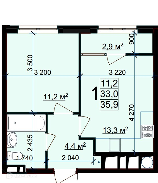 Общая площадь 35.9 м2