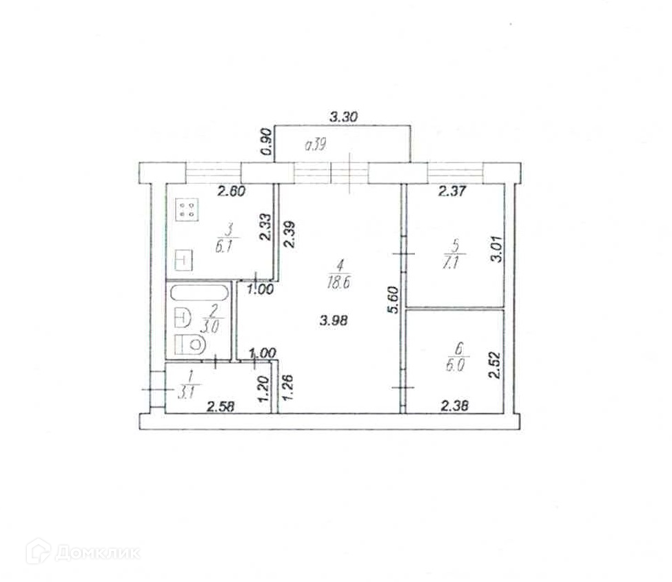 3-комнатная квартира, 43.9 м2, этаж 4 / 5, на продажу в Рязани, Октябрьская улица, 39