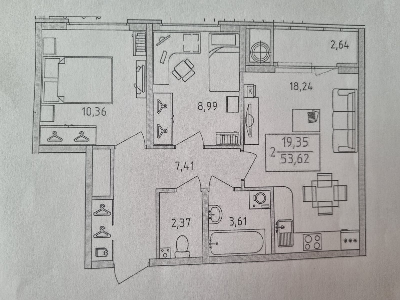 Общая площадь 53.62 м2