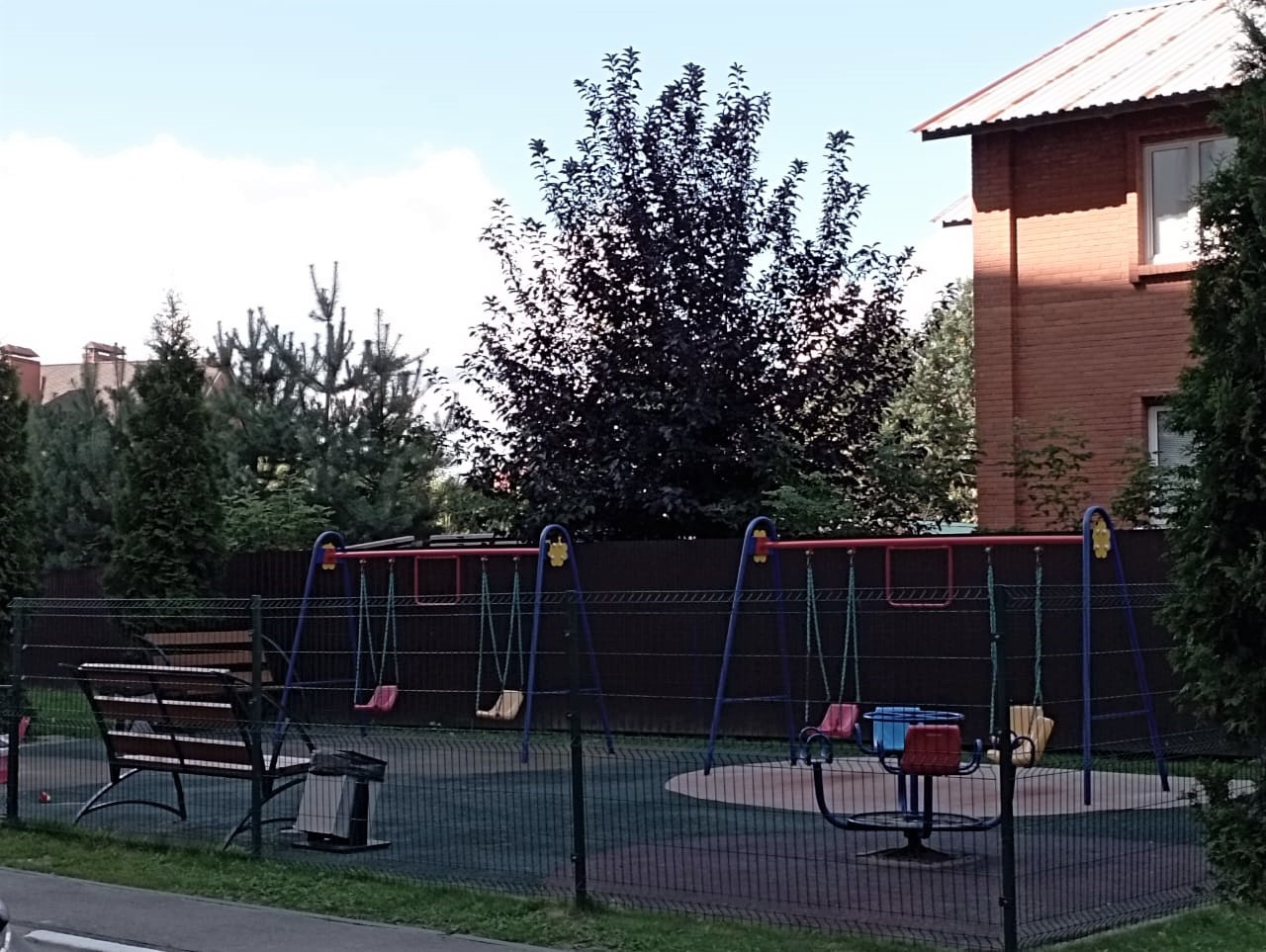 Закрытая территория дома, видеонаблюдение, детские и спортивные площадки.