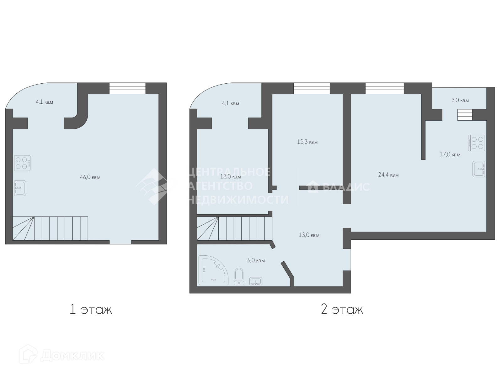 - ровный пол везде, стены штукатурка + шпаклевка (только на 2 эт); коридор обшит гипсокартоном ;