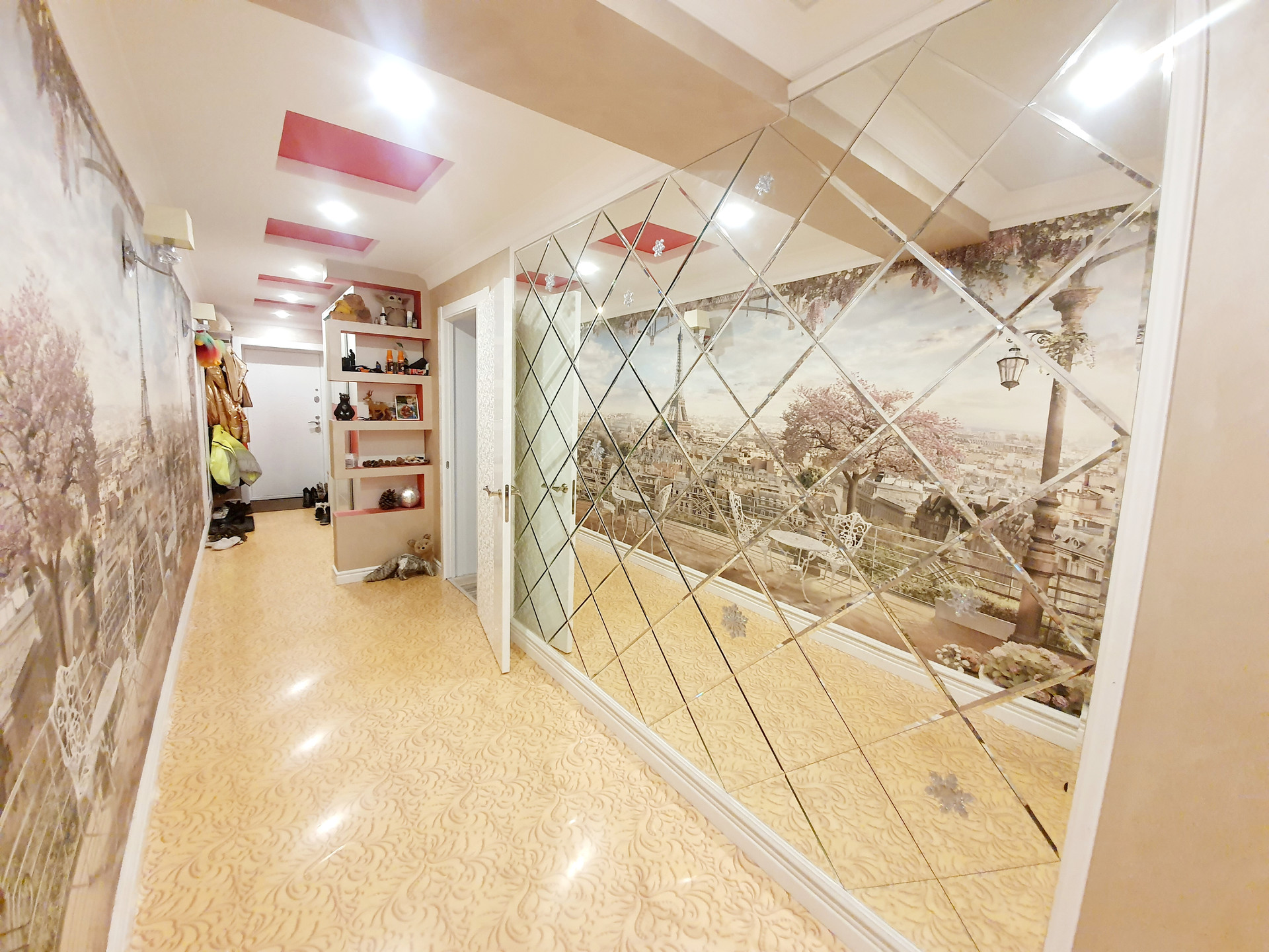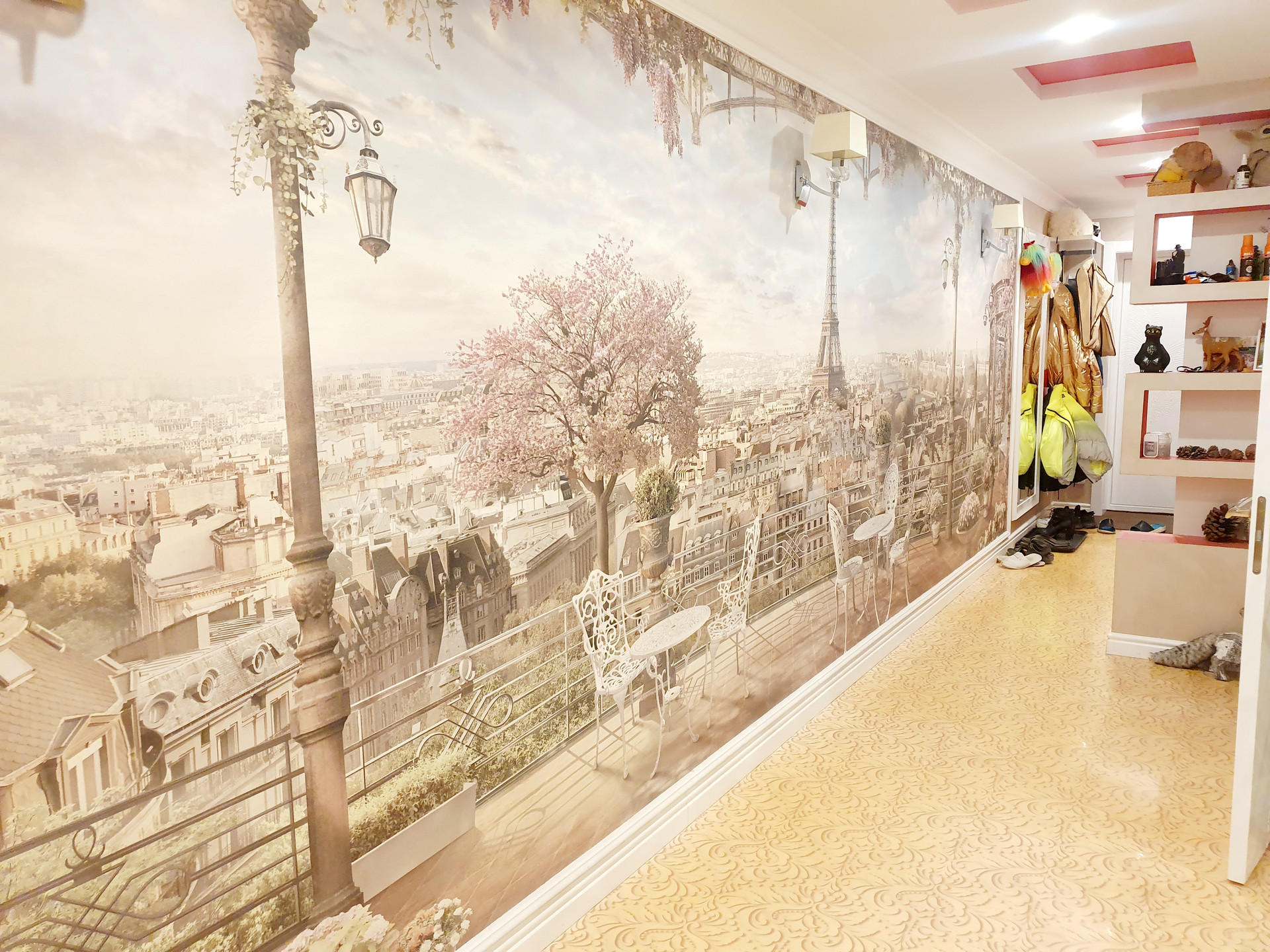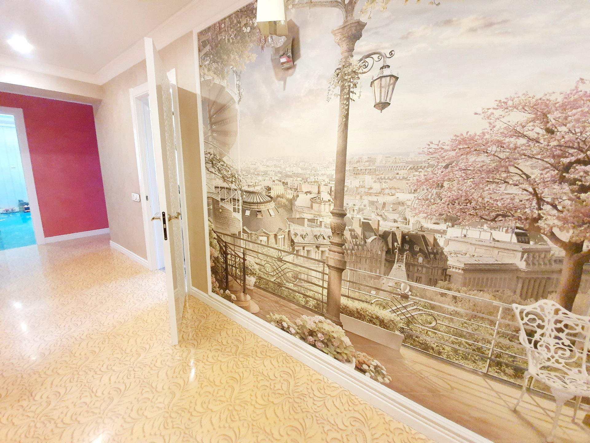 В прихожей наливной пол по стене красивая фреска. Такое будет только у вас , в единственном экземпляре ))).