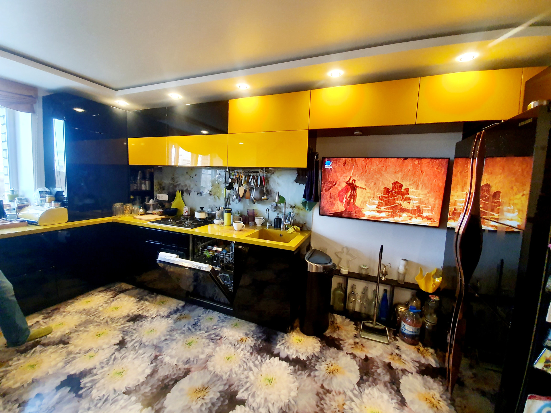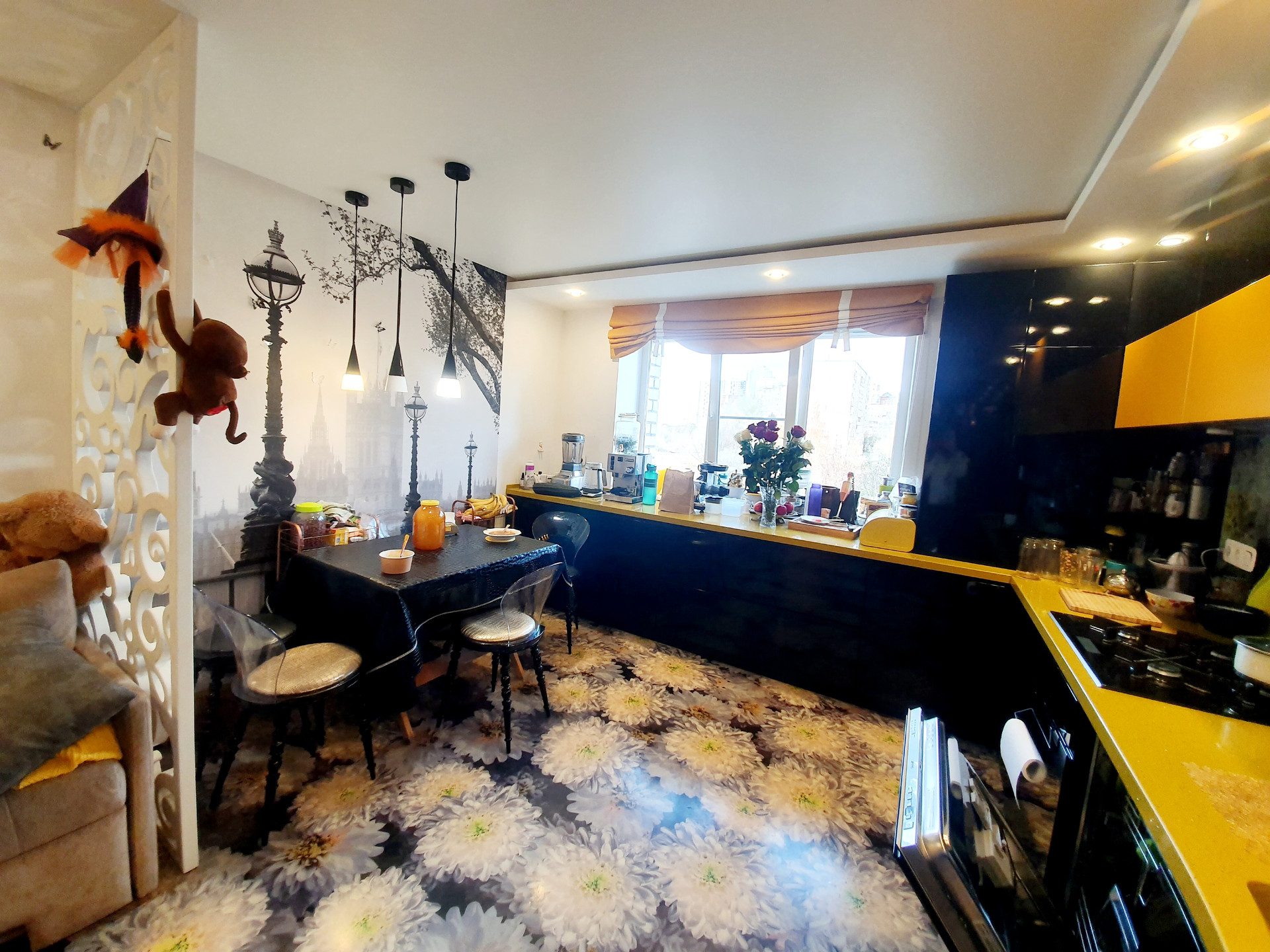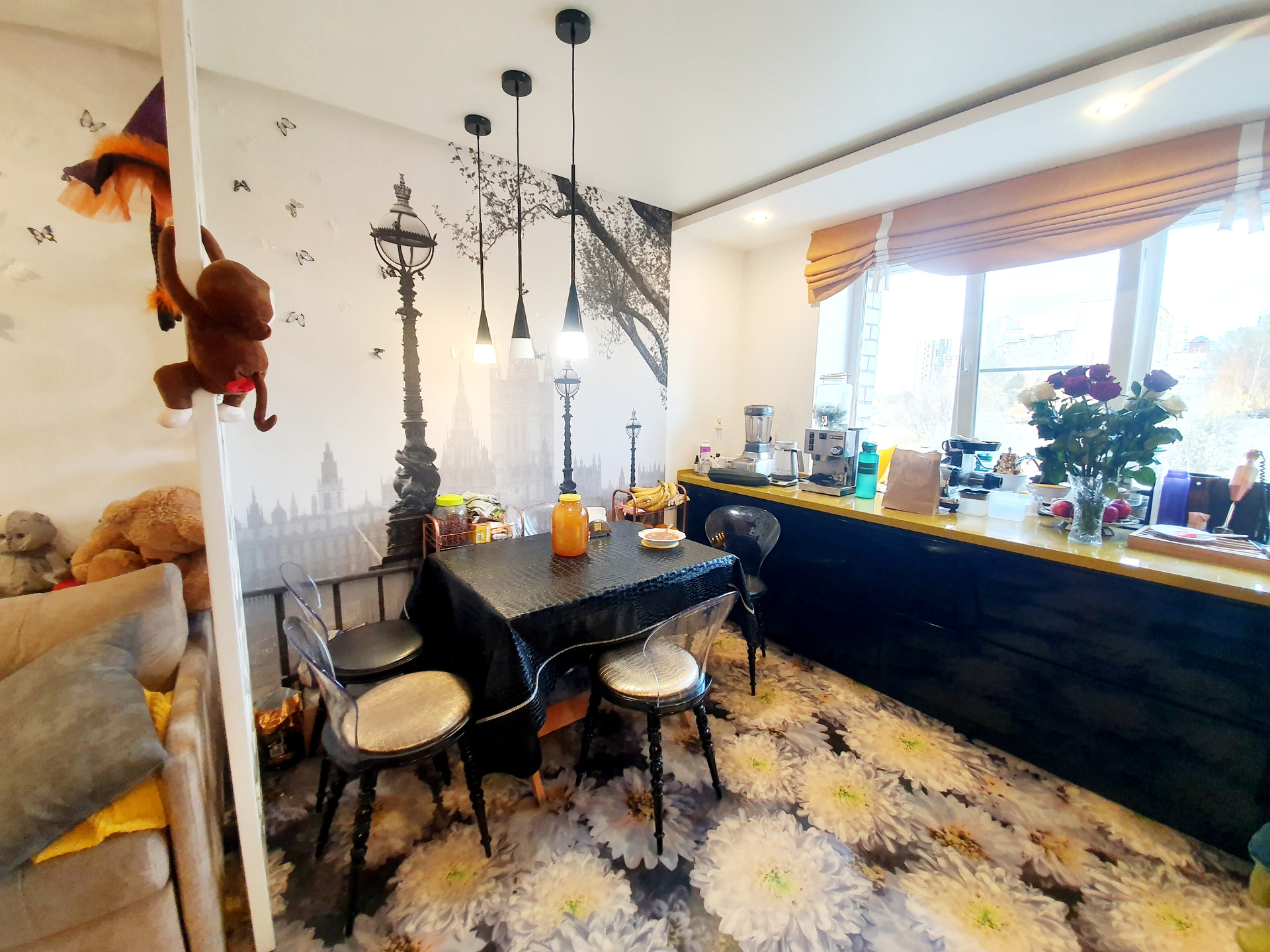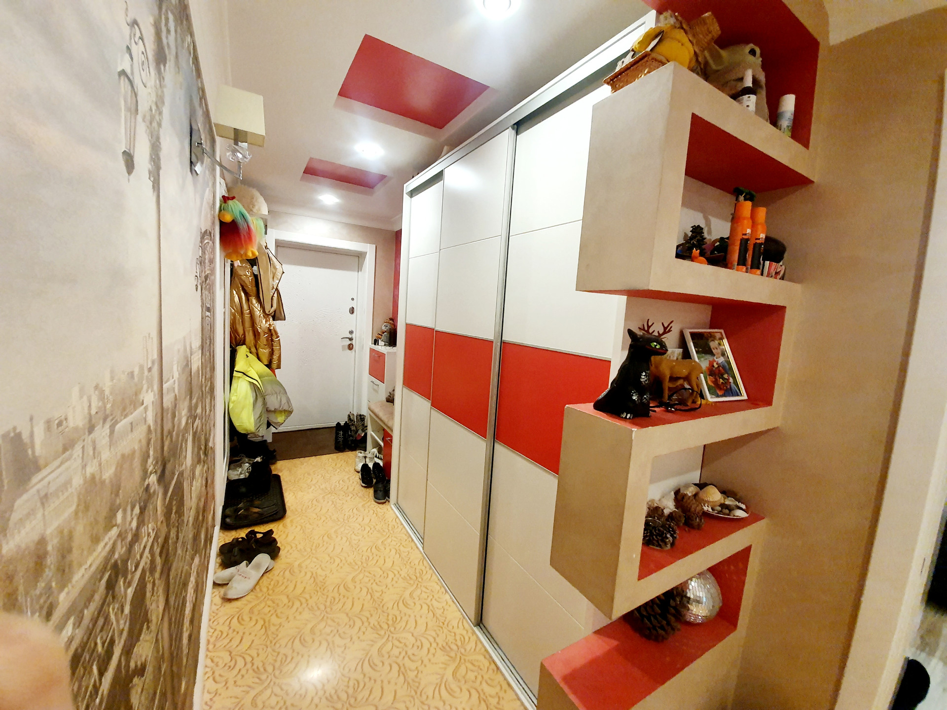 В прихожей наливной пол по стене красивая фреска. Такое будет только у вас , в единственном экземпляре ))).