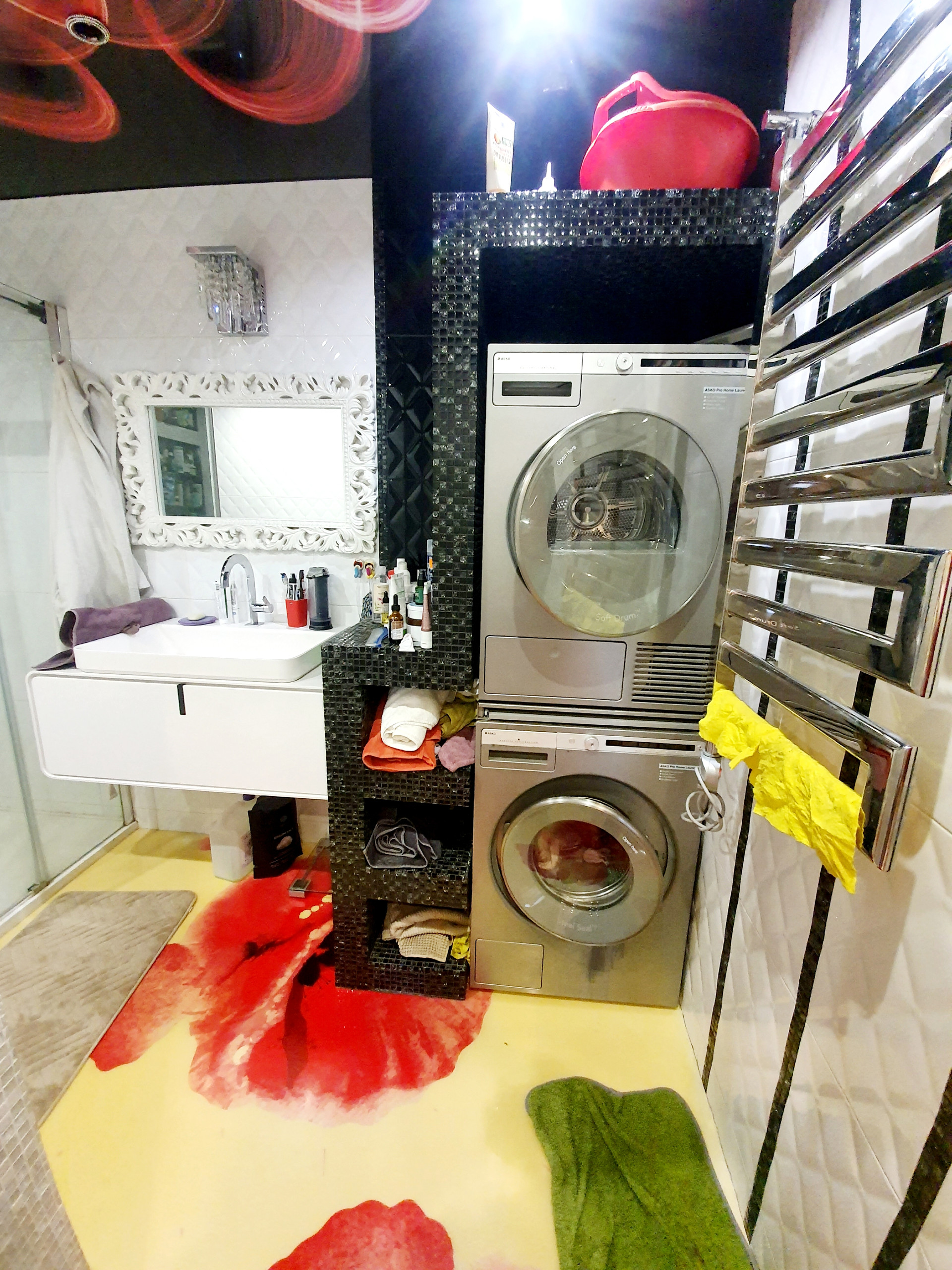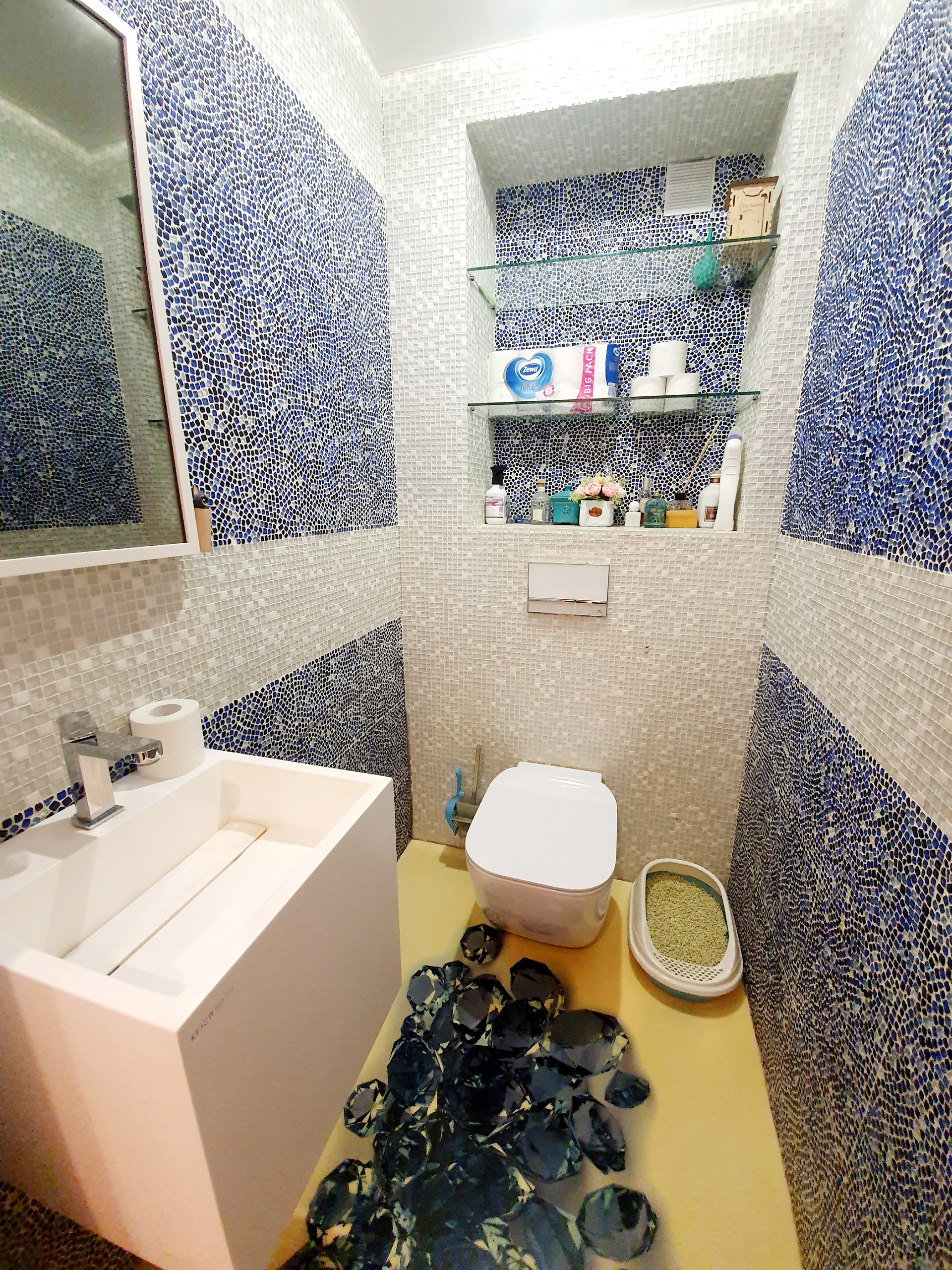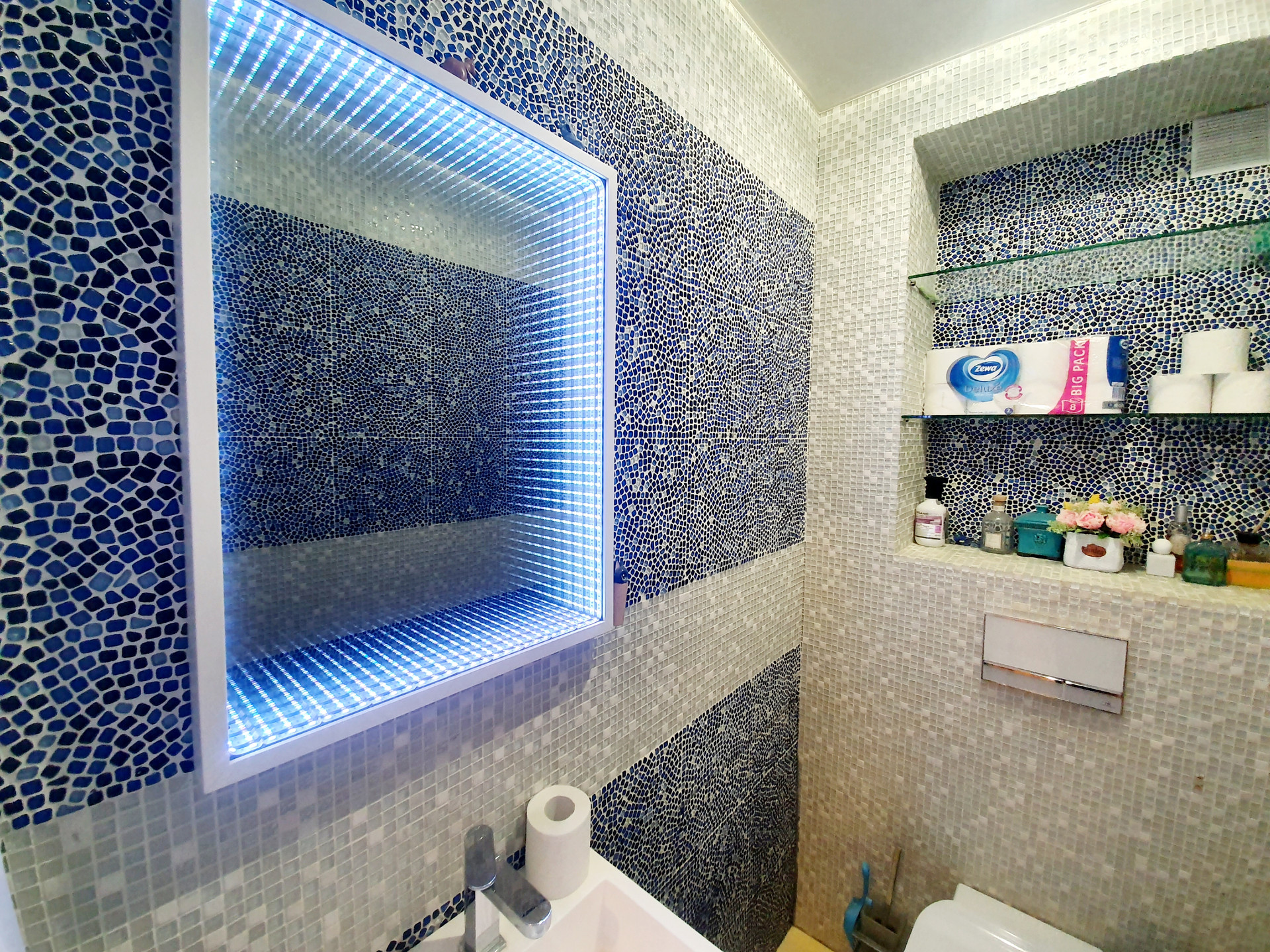 Санузел выложен полностью мозаикой. Ванная комната( 6.3 кВ.м) частично мозаика и итальянская плитка! Стиральная и сушильная машины -Asco