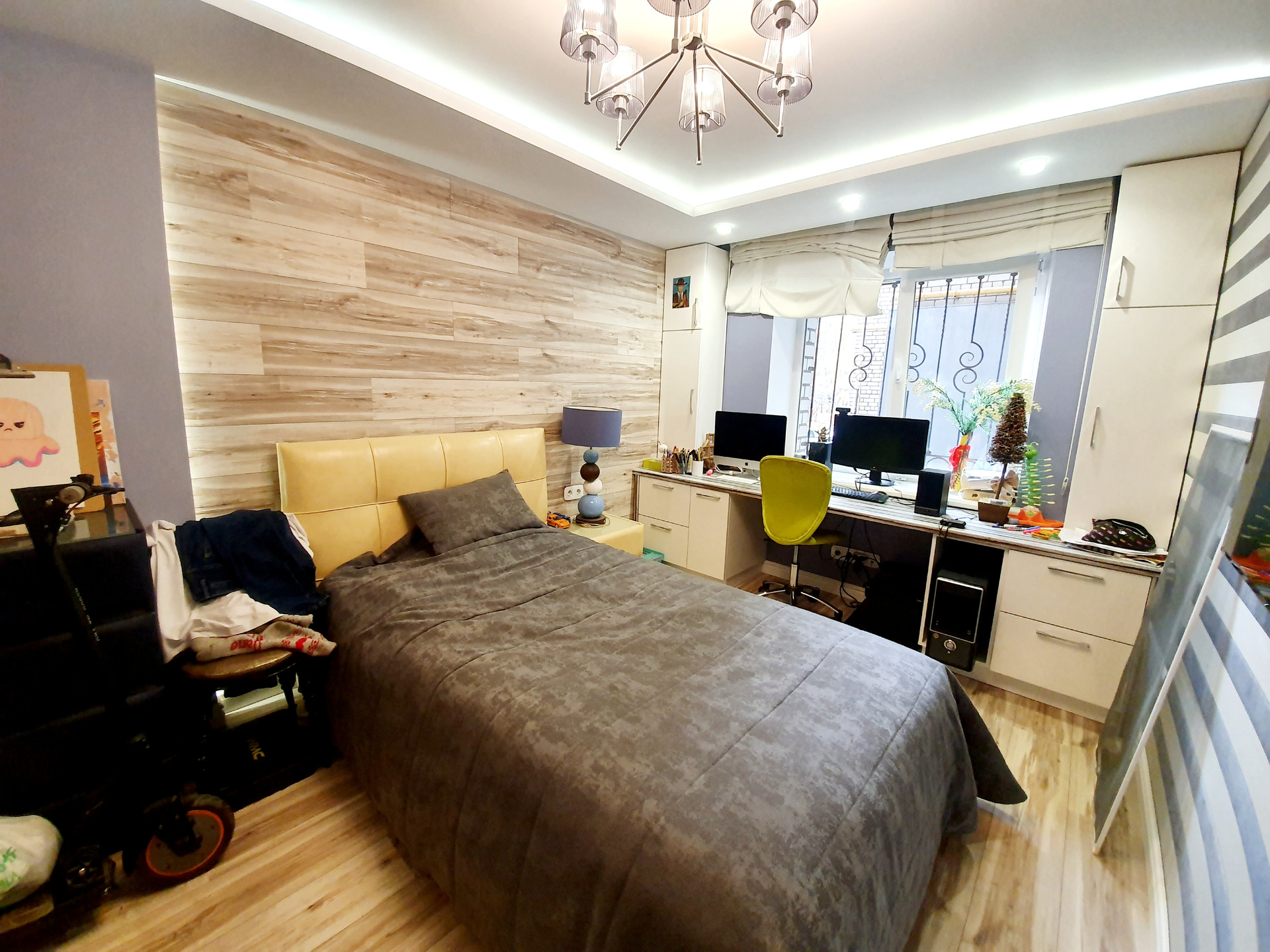 —Спальня 2: 12кв.м ( ламинат) , хорошие , качественные итальянские обои .