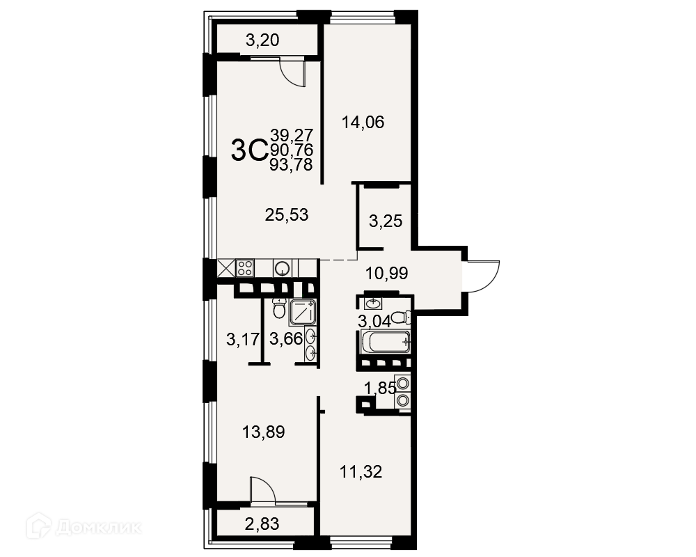 Общая площадь 89.9 м2