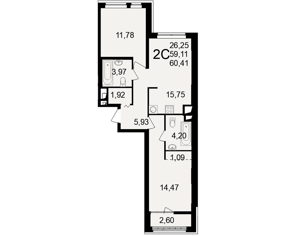 Общая площадь 60 м2