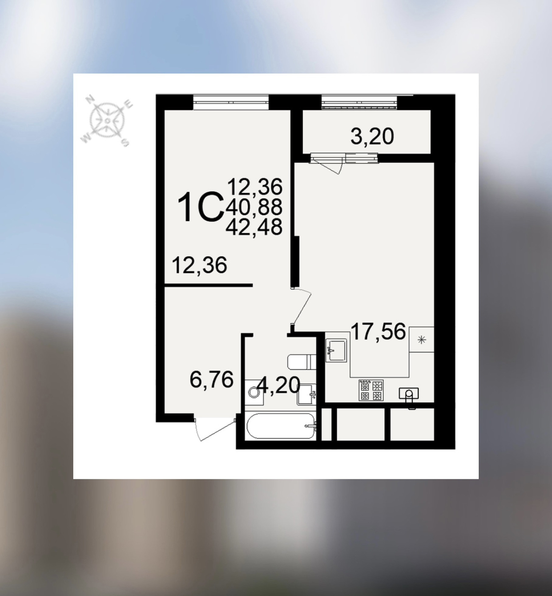 Общая площадь 41 м2