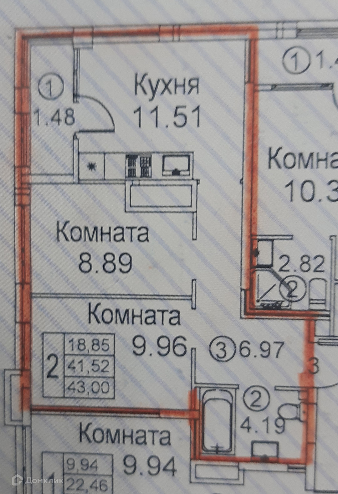Общая площадь 41.5 м2