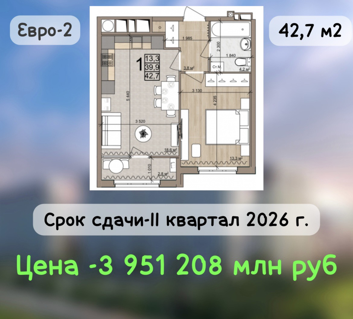 Общая площадь 43 м2