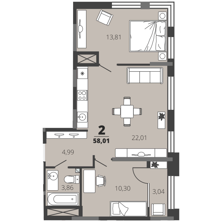 Общая площадь 58 м2