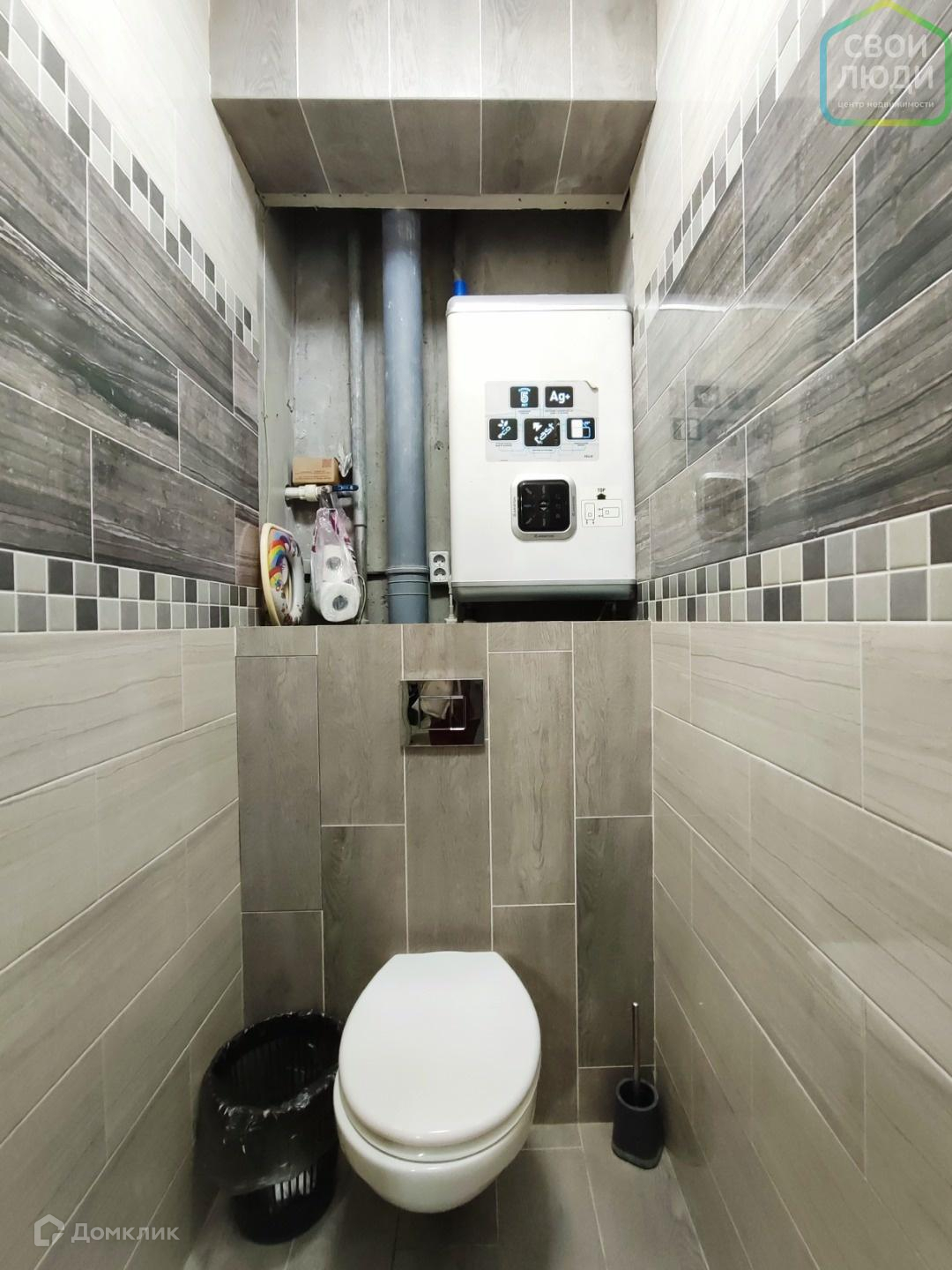 Санузел раздельный. Выложена плитка на стенах и полу. В туалете располагается водонагреватель, на случай , если отключают горячую воду.
