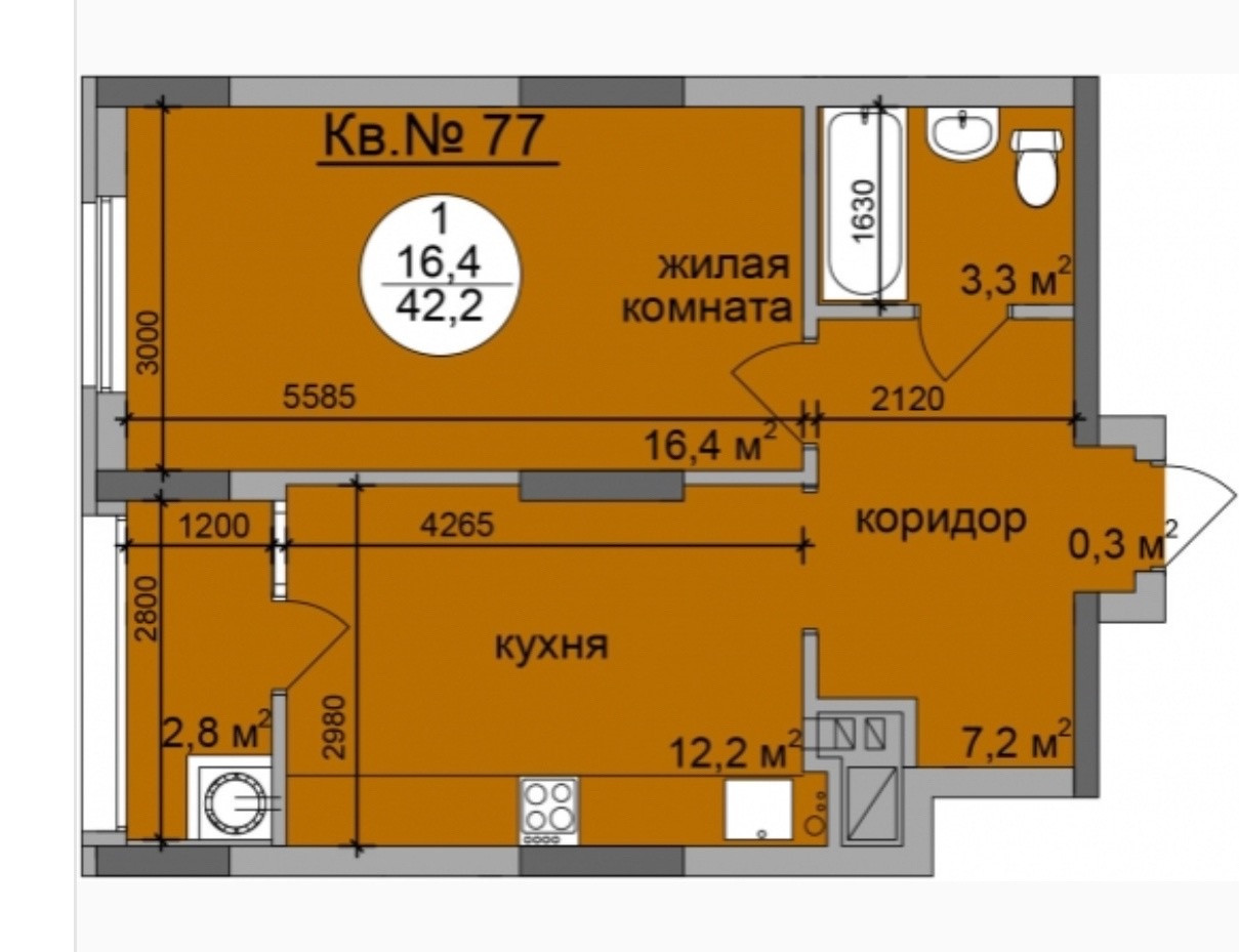 Общая площадь 43 м2