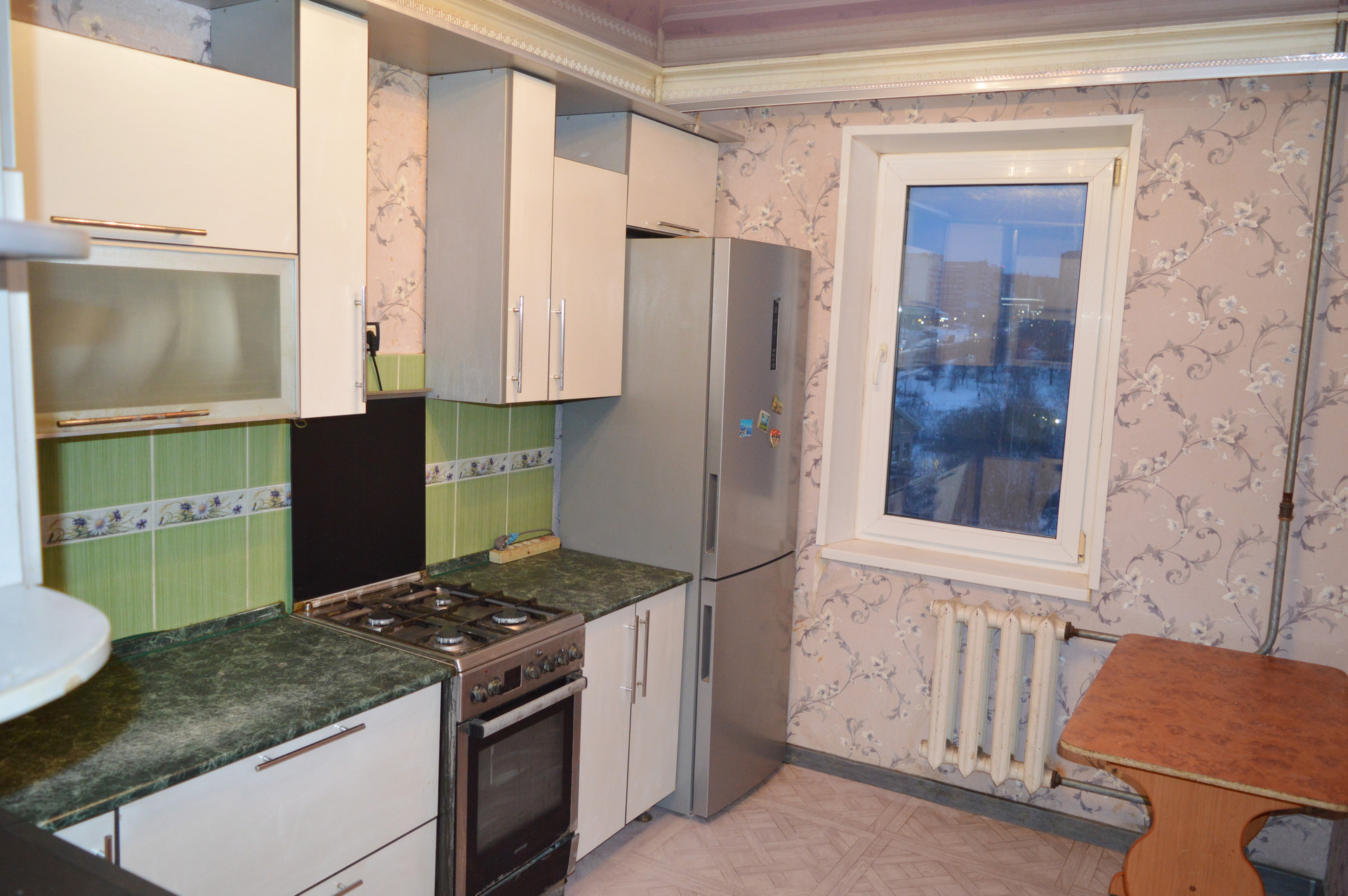 В квартире сделан новый ремонт: заменена вся электропроводка,  окна и трубы ПВХ, счетчики на воду, новые радиаторы отопления, лоджия застеклена, есть кладовая.