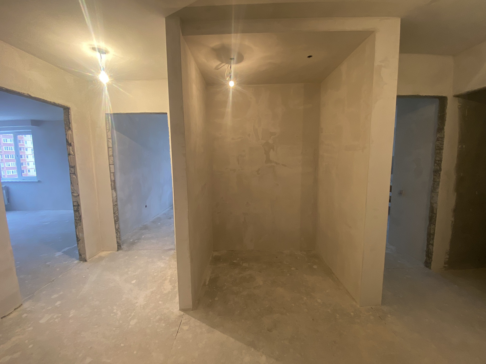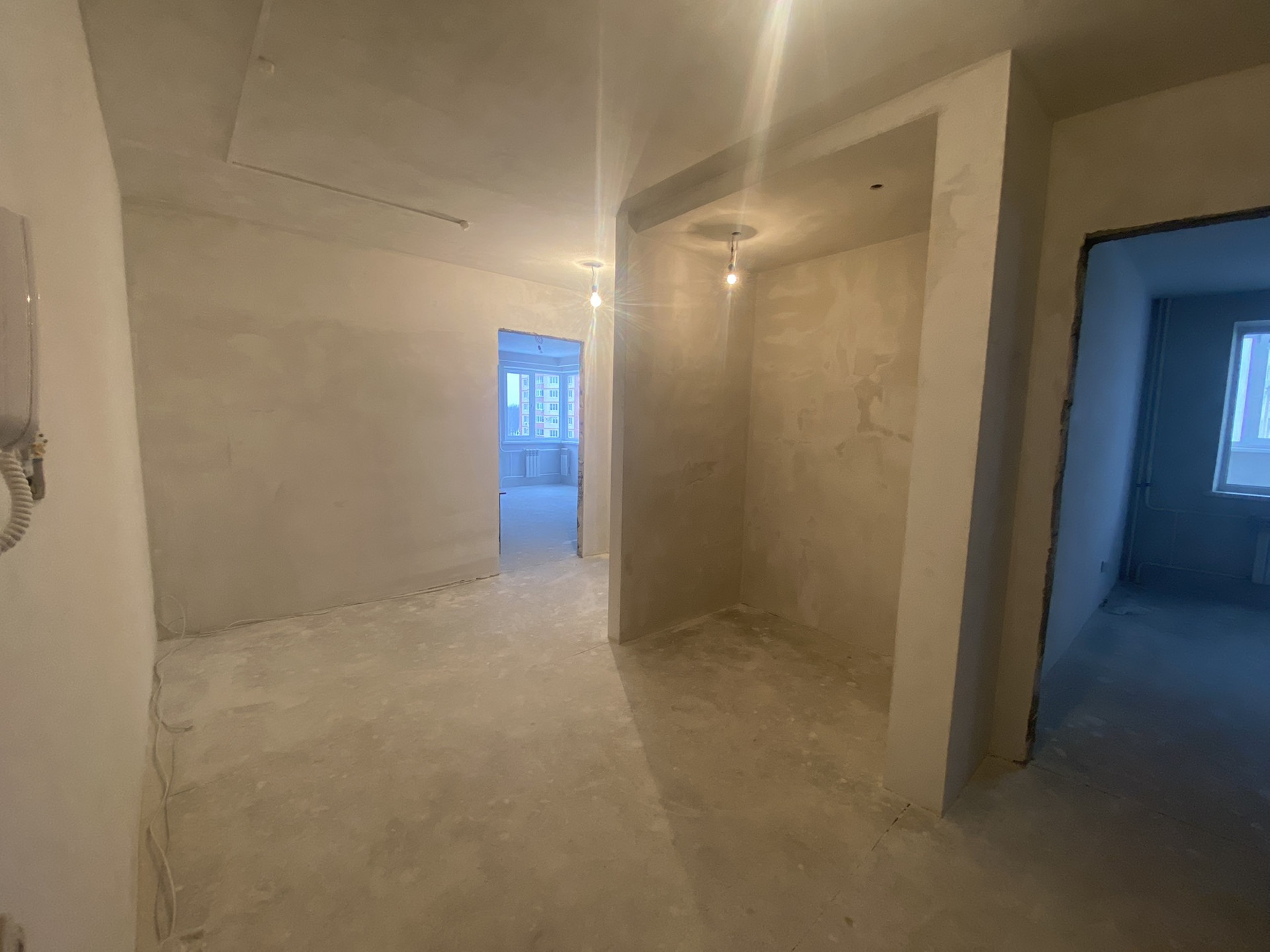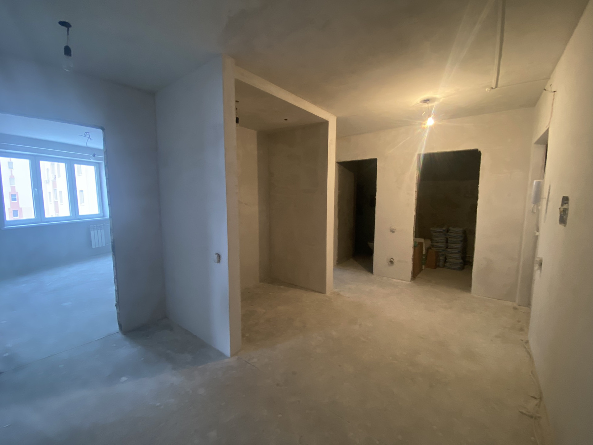 В квартире сделана предчистовая отделка: все стены выровнены, идеальная стяжка, разведена вся электрика. Квартира очень тёплая , отопление автономное(своя крышная котельная).