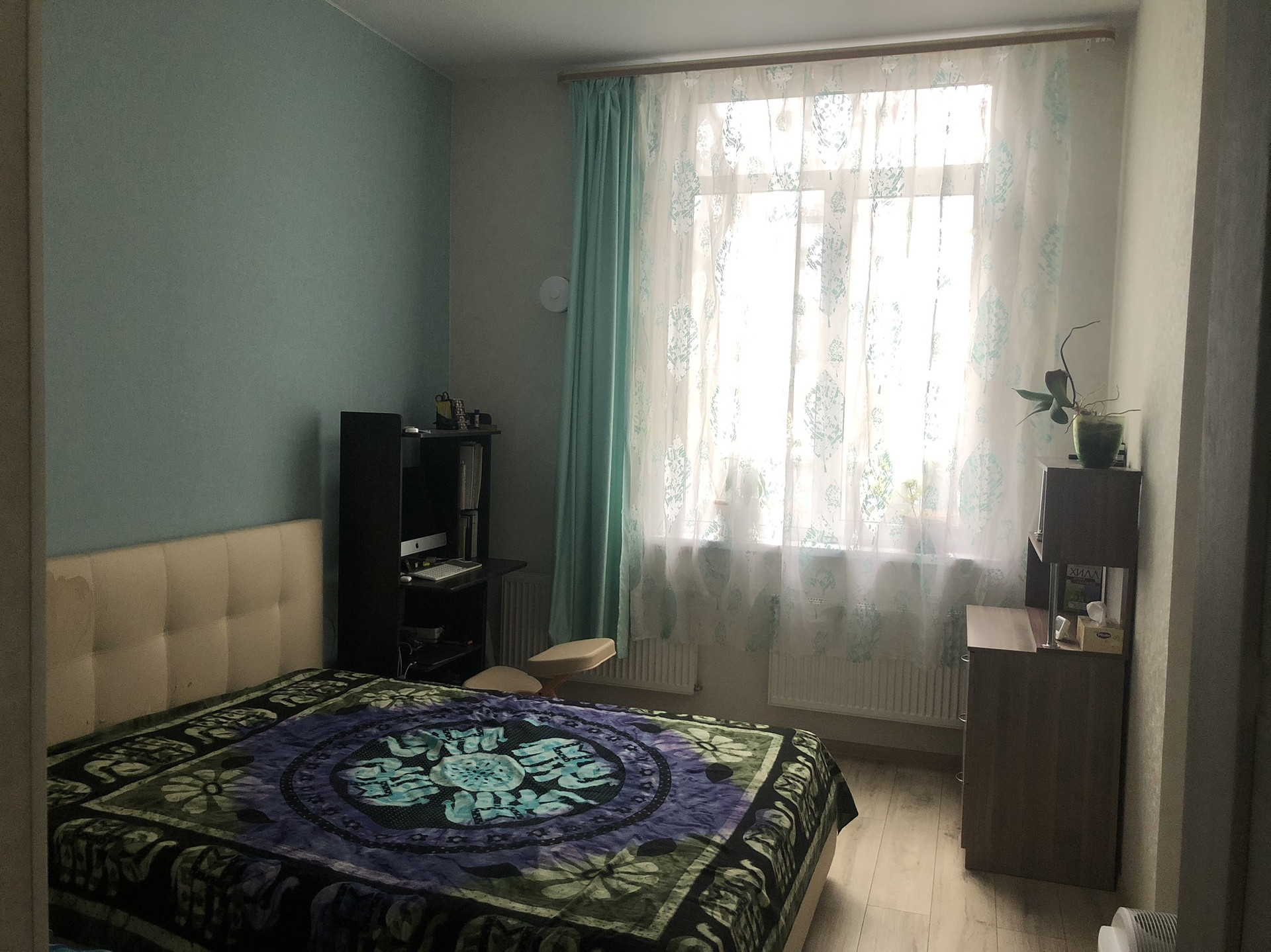 Сделан аккуратный и практичный ремонт. Прихожая, санузел и зона готовки выложена плиткой. Кухня-гостинная большая и позволяет использовать ее как комнату. Индивидуальное отопление - котел, что экономит коммунальные платежи. Установлена сантехника, кухонный гарнитур. Большие окна дают достаточно света. Лоджия 4,29 комфортна для хранения вещей и продуктов. В летнее время солнце светит в окна только по обеда.